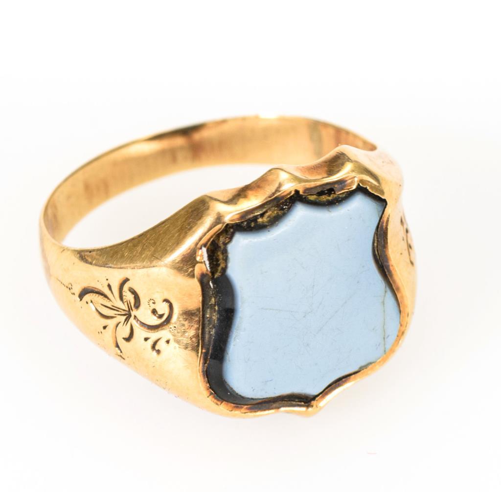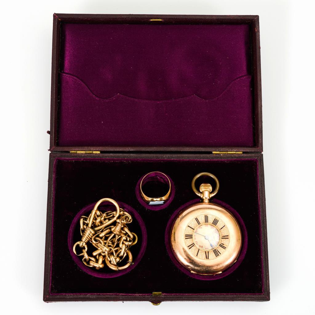 Goldene Halbsavonnette mit Uhrenkette und Siegelring