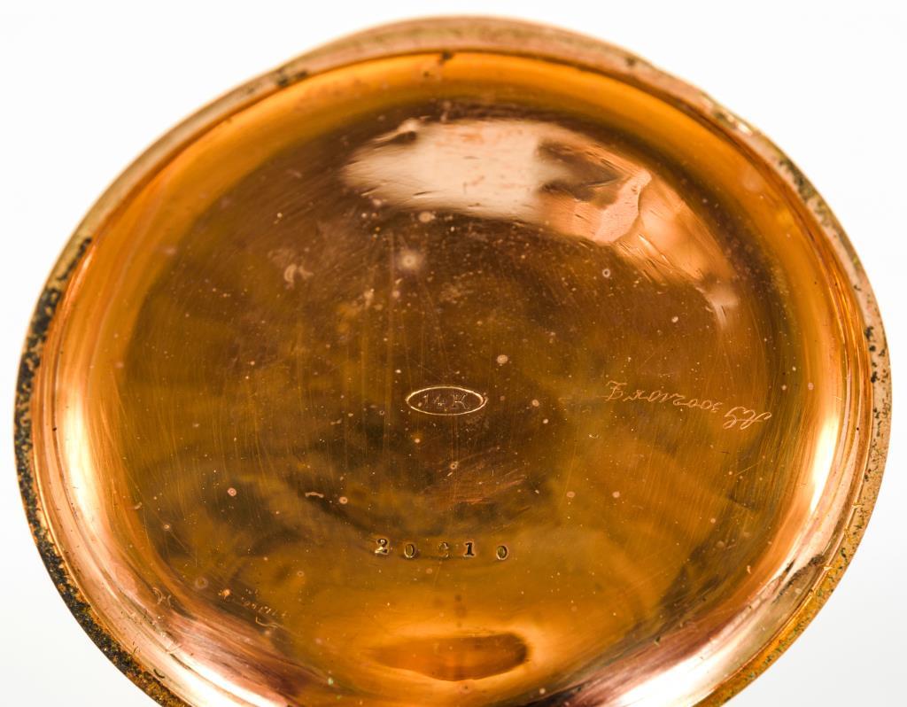 Werknummer: 20810.Gehäusenummer: 20810.3/4-Platinenwerk mit Ankerhemmung, Schraubenkompensationsunruh, gebläuter Breguet-Spirale und Schrauben, Kronenaufzug.Weißes Emailzifferblatt mit römischen Zahlen, Minuterie, kleiner Sekunde, farbiges Hilfszifferblatt für 24-Stundenanzeige, gebläute Spade-Zeigern.