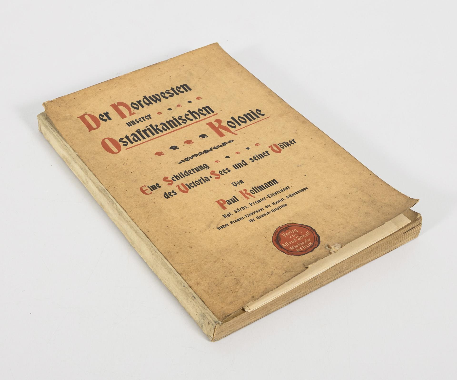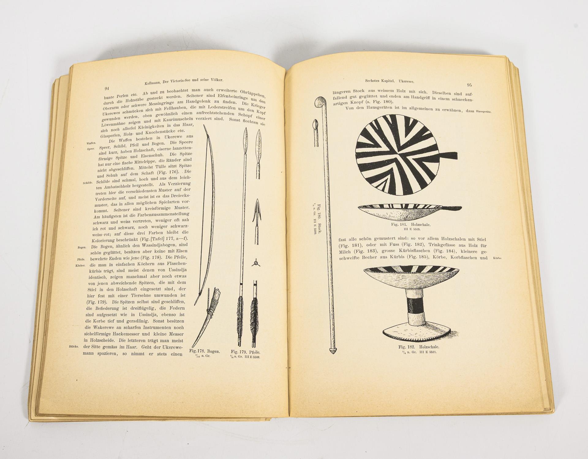 8, 191 Seiten im Broschureinband. Detaillierte Beschreibung und Illustrierung von Gebrauchsgegenständen, einige fotografische Abbildungen sowie ein Wörterverzeichnis folgender Sprachen: Ki-Karagwe; Ki-Swaheli; Ki-Ussukuma; Ki-Ussindja; Ki-Uganda; Ki-Ukerewe und Ki-Uha. / Karte: "Dr. F. Stuhlmann's Aufnahmen im Gebiet des Albert- und Albert-Edward-Sees während der Emin Pascha Expedition ... 1892" Gezeichnet von Max Moisel, 1901. Einband etwas eingerissen.