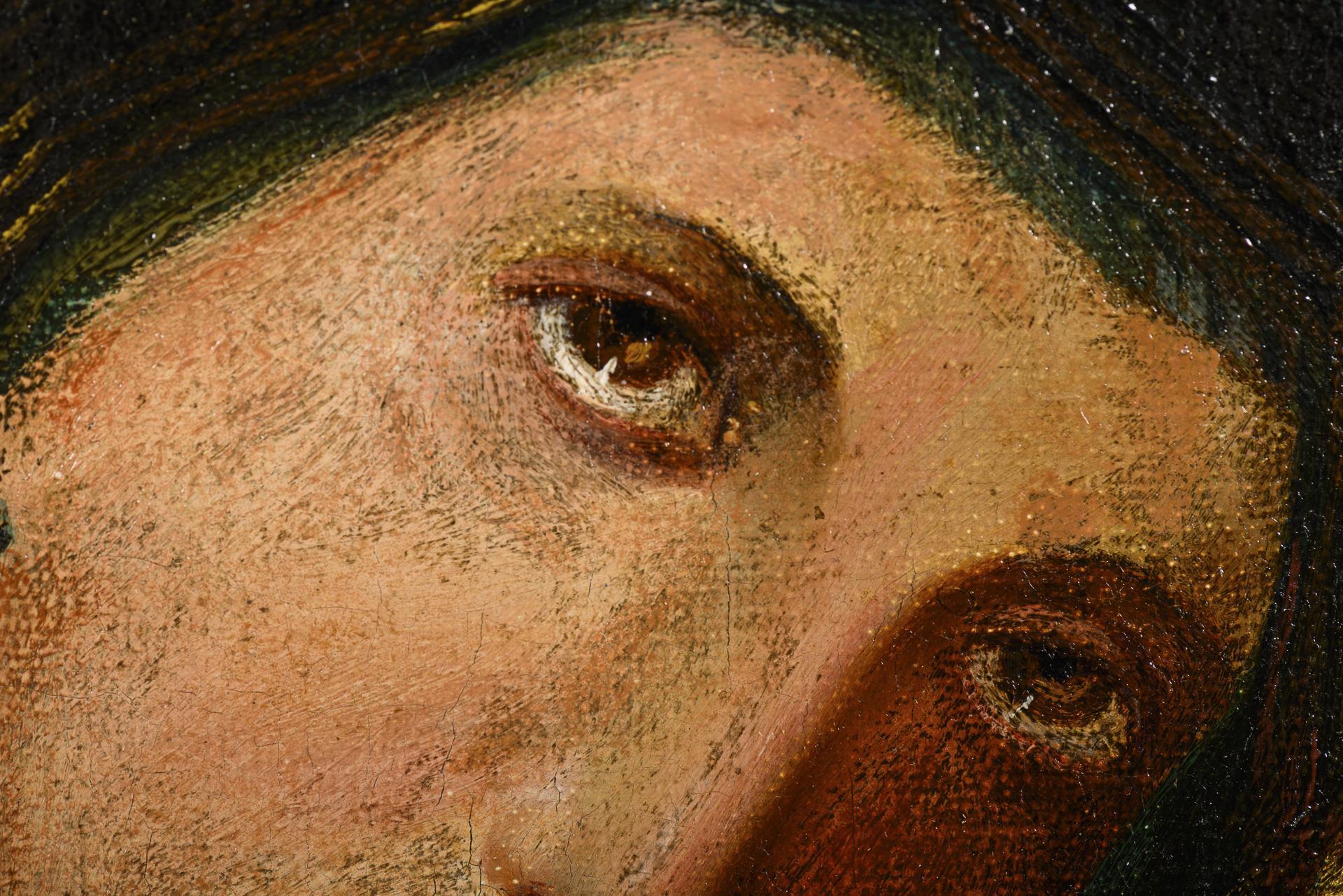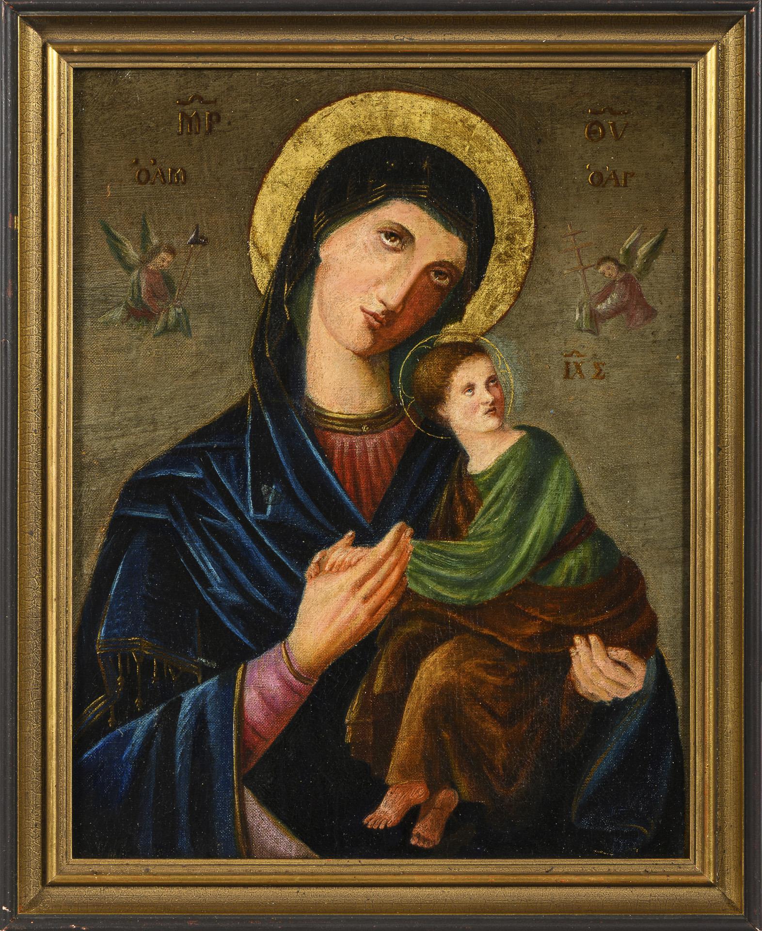 Nach dem Vorbild russisch-orthodoxer Ikonen gemalte Muttergottes mit dem Jesuskind auf dem Arm.