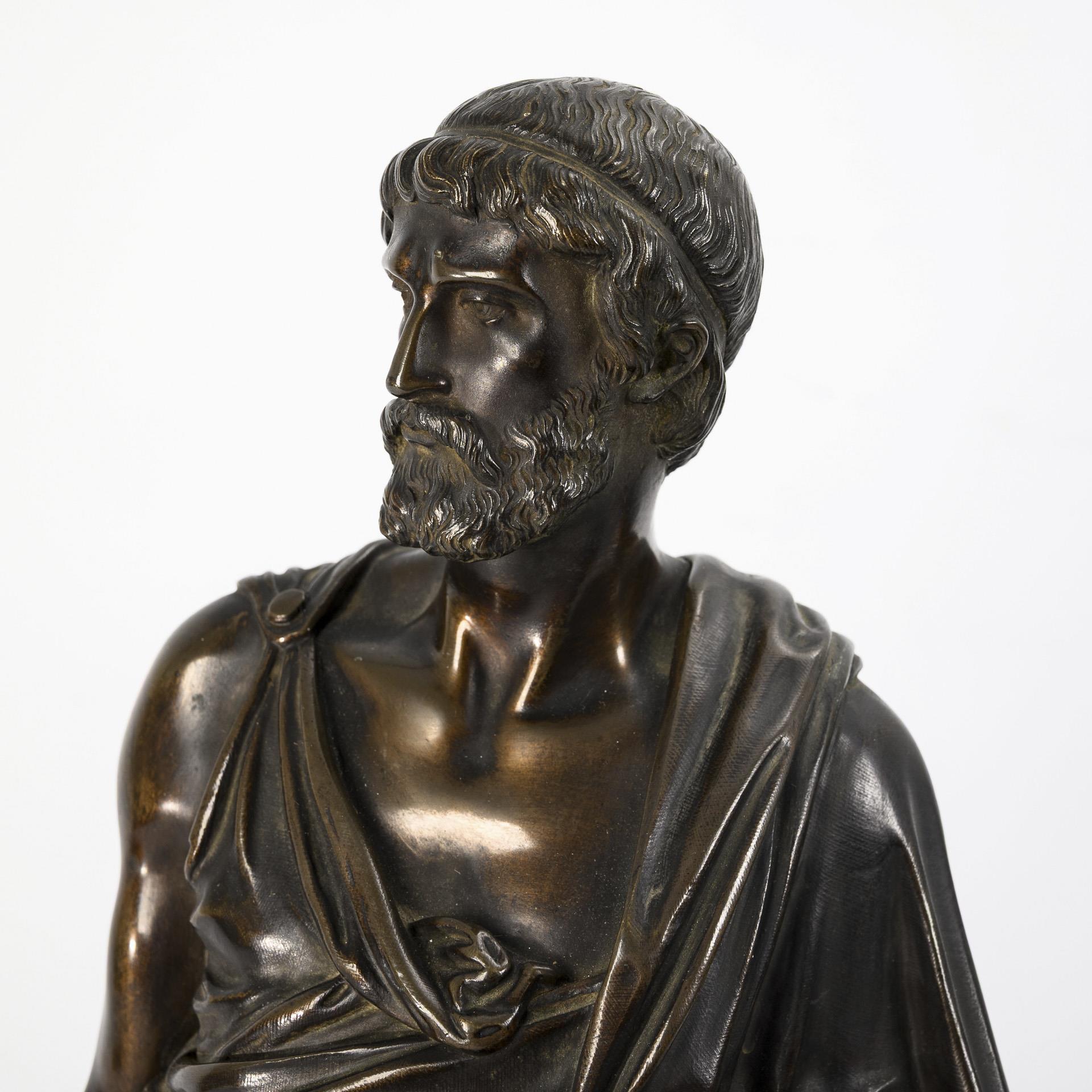 Auf dem Bronzesockel mit Maskaron und Lorbeerzweigen stehender Philosoph oder Dichter in qualitätvoller Ausführung. Minimale Chips am Marmor.