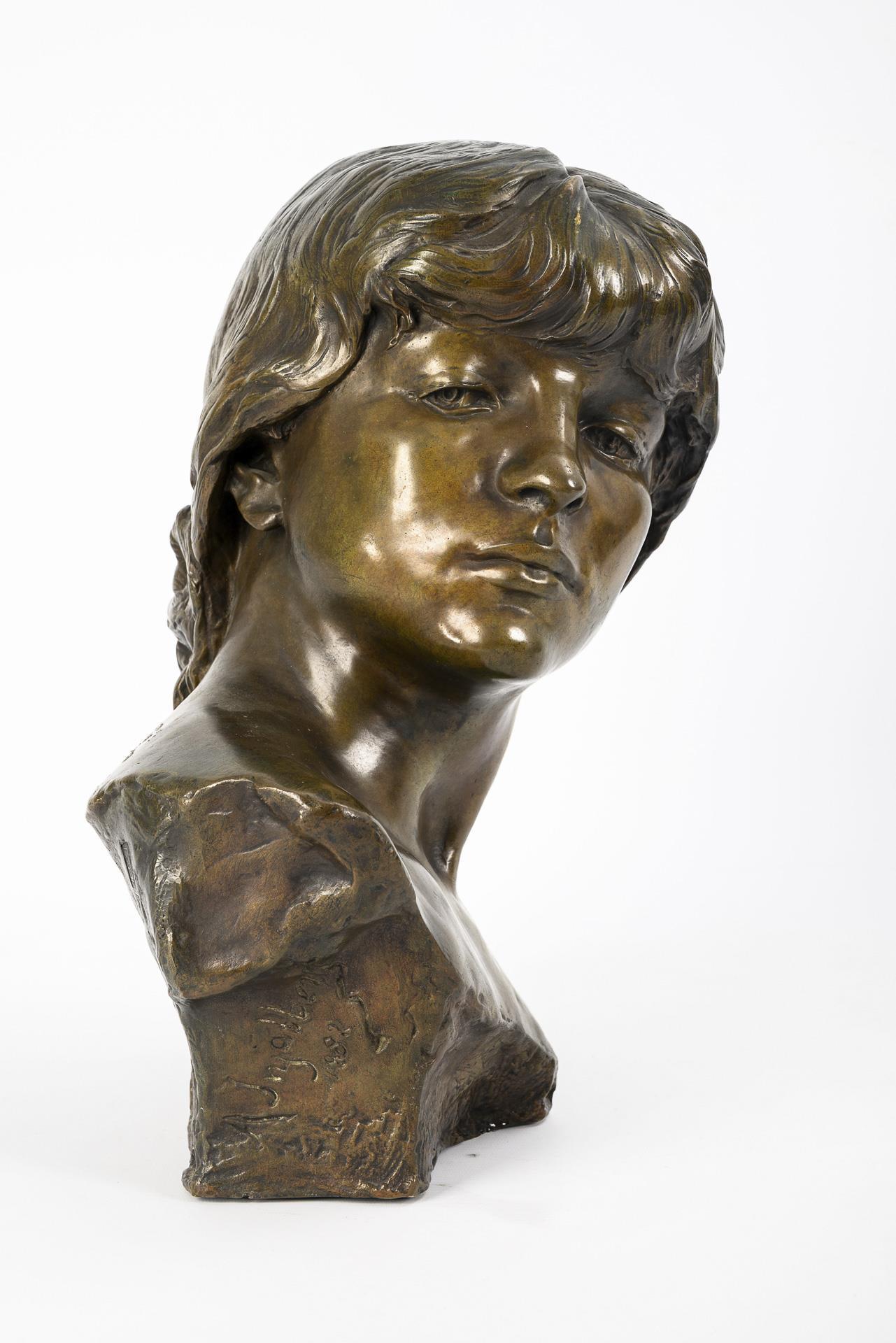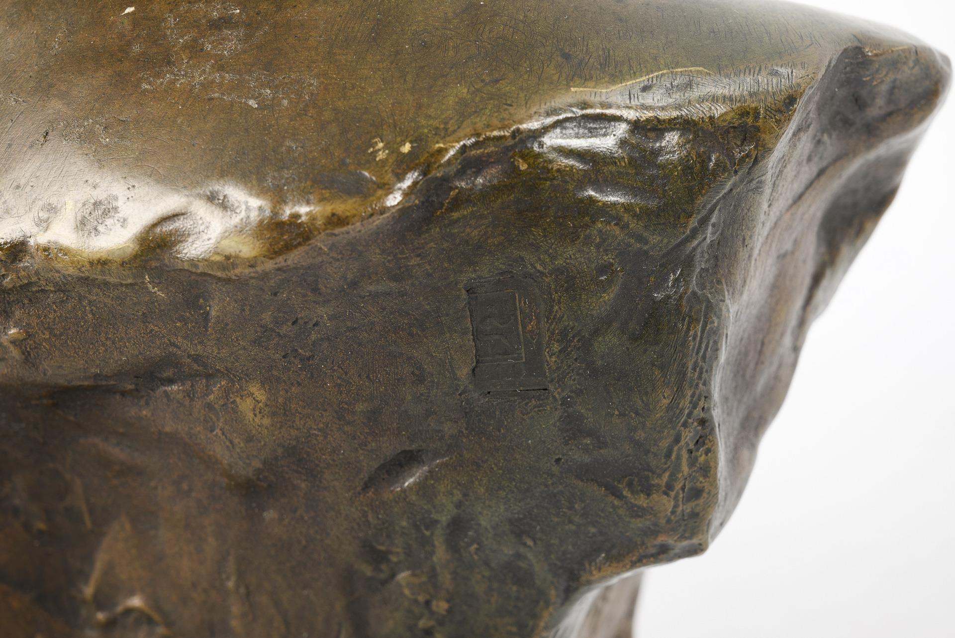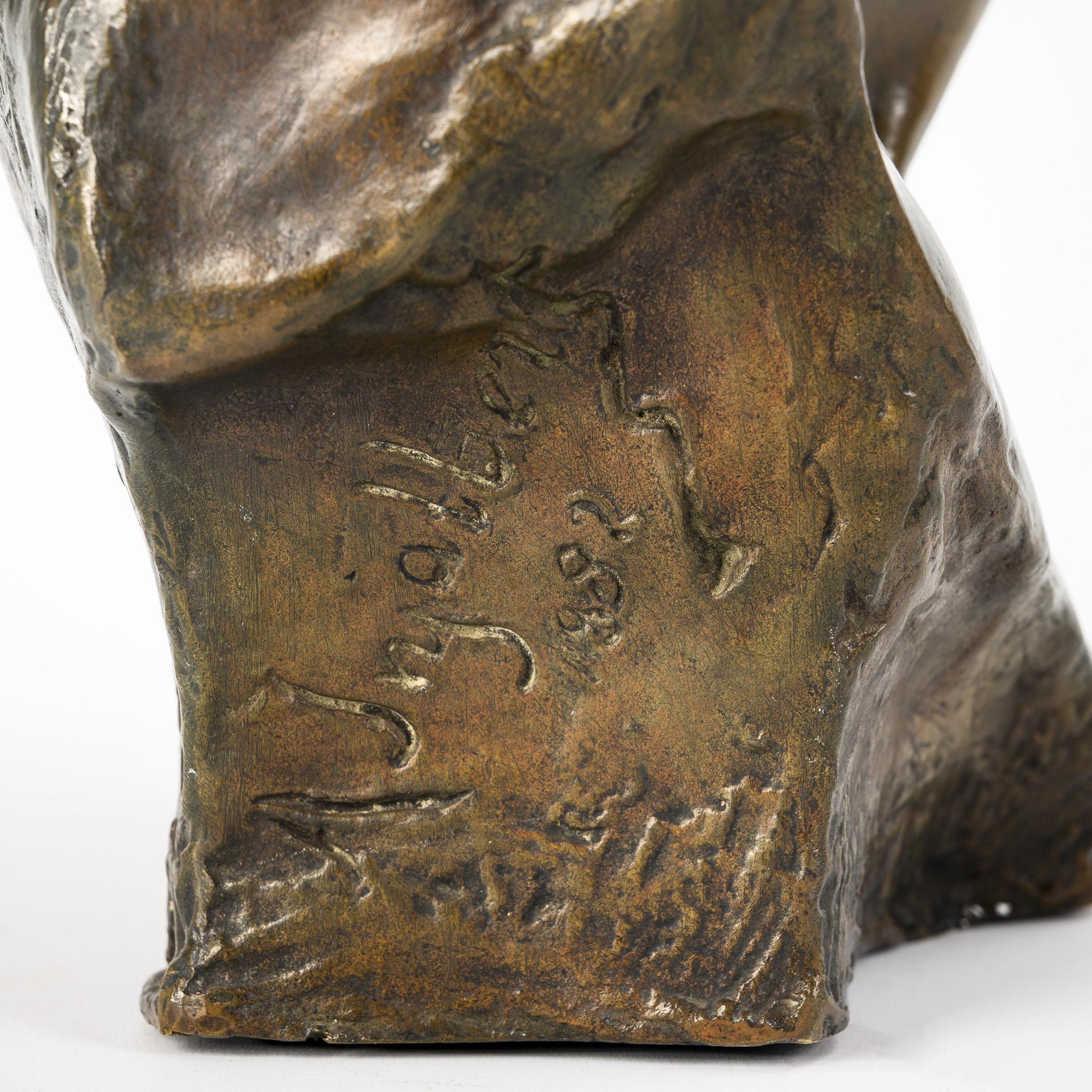 Bronze patiniert. Bezeichnet/datiert "A Injalbert 1882" mit Gießereimarke "Goldscheider" und Markierung "19". H 41 cm. 12 kg.