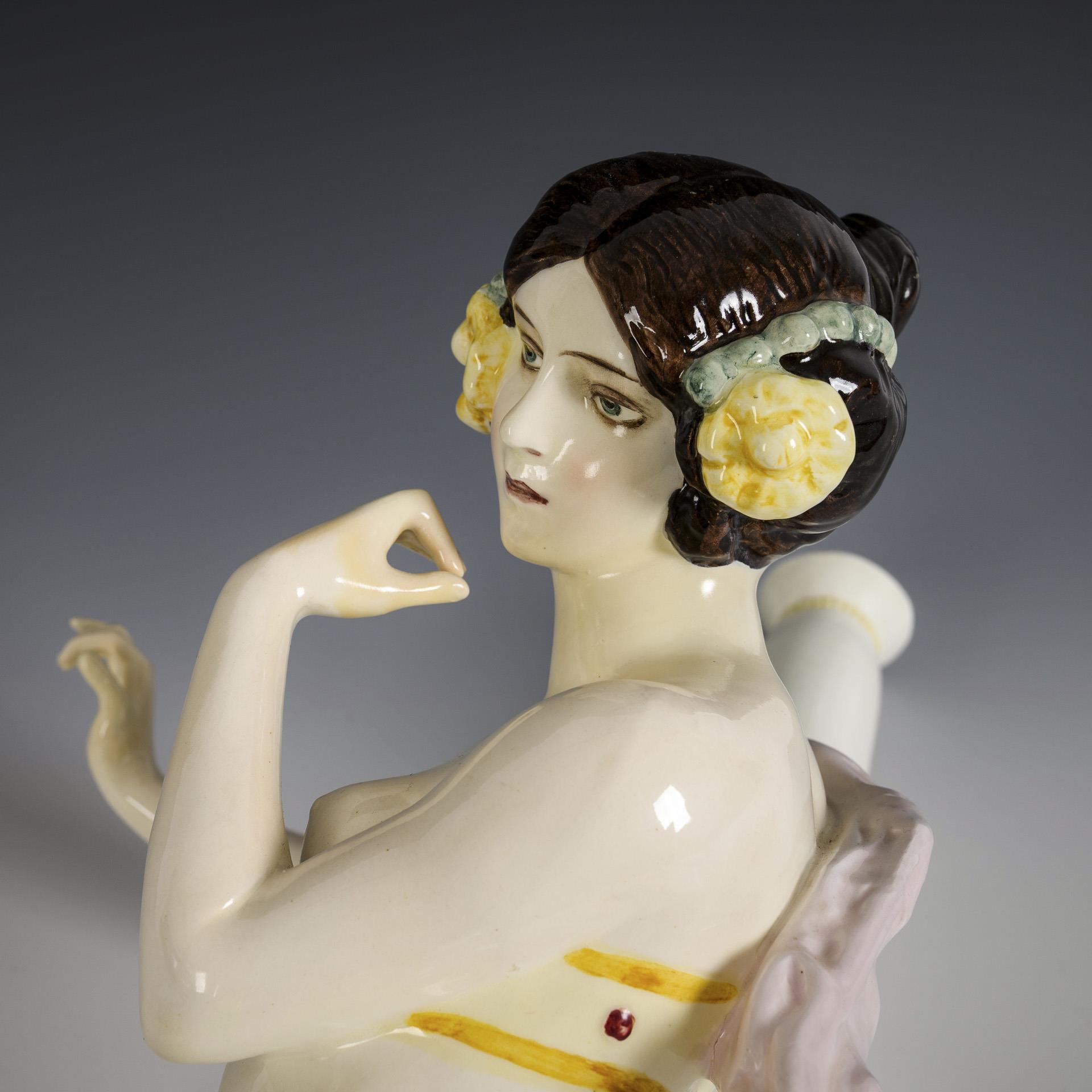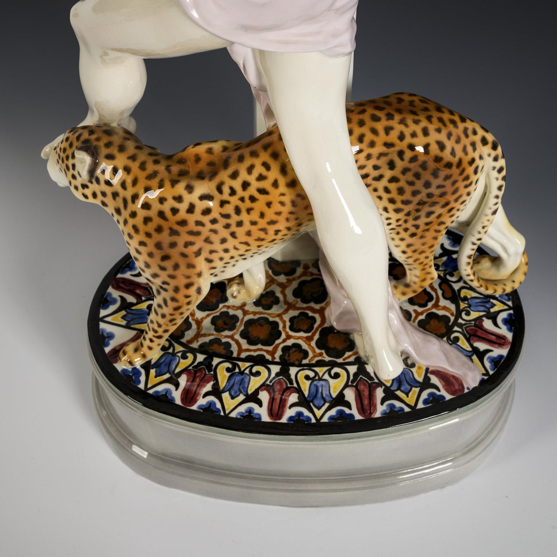Jugendstil-Lampenfuß mit Tänzerin und Leopard. Wiener Manufaktur Friedrich Goldscheider.