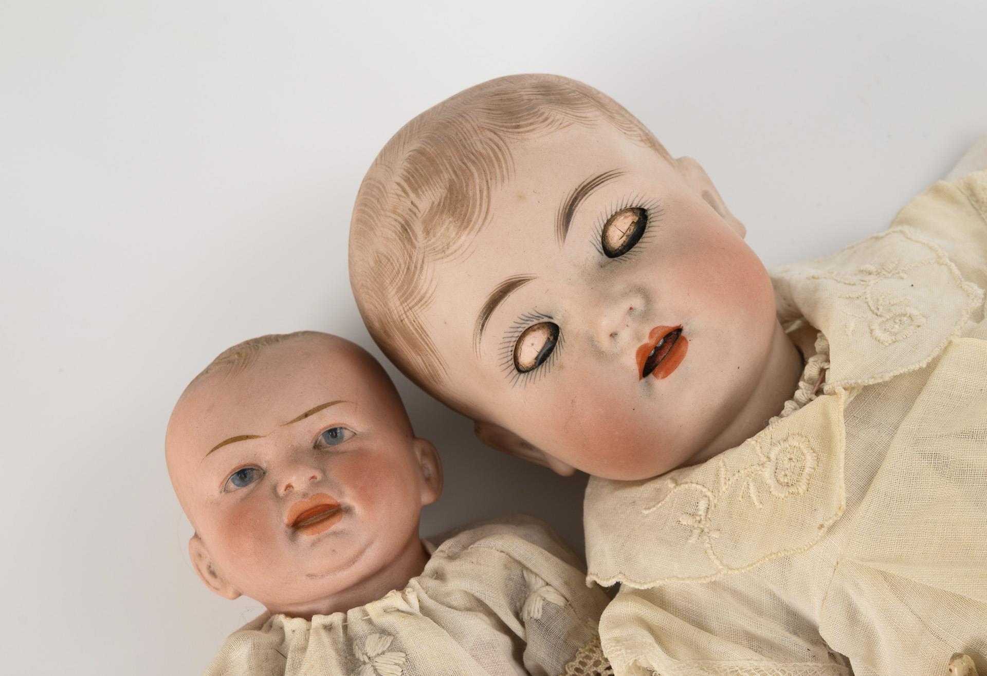 2 kleine Porzellankopf-Babys.