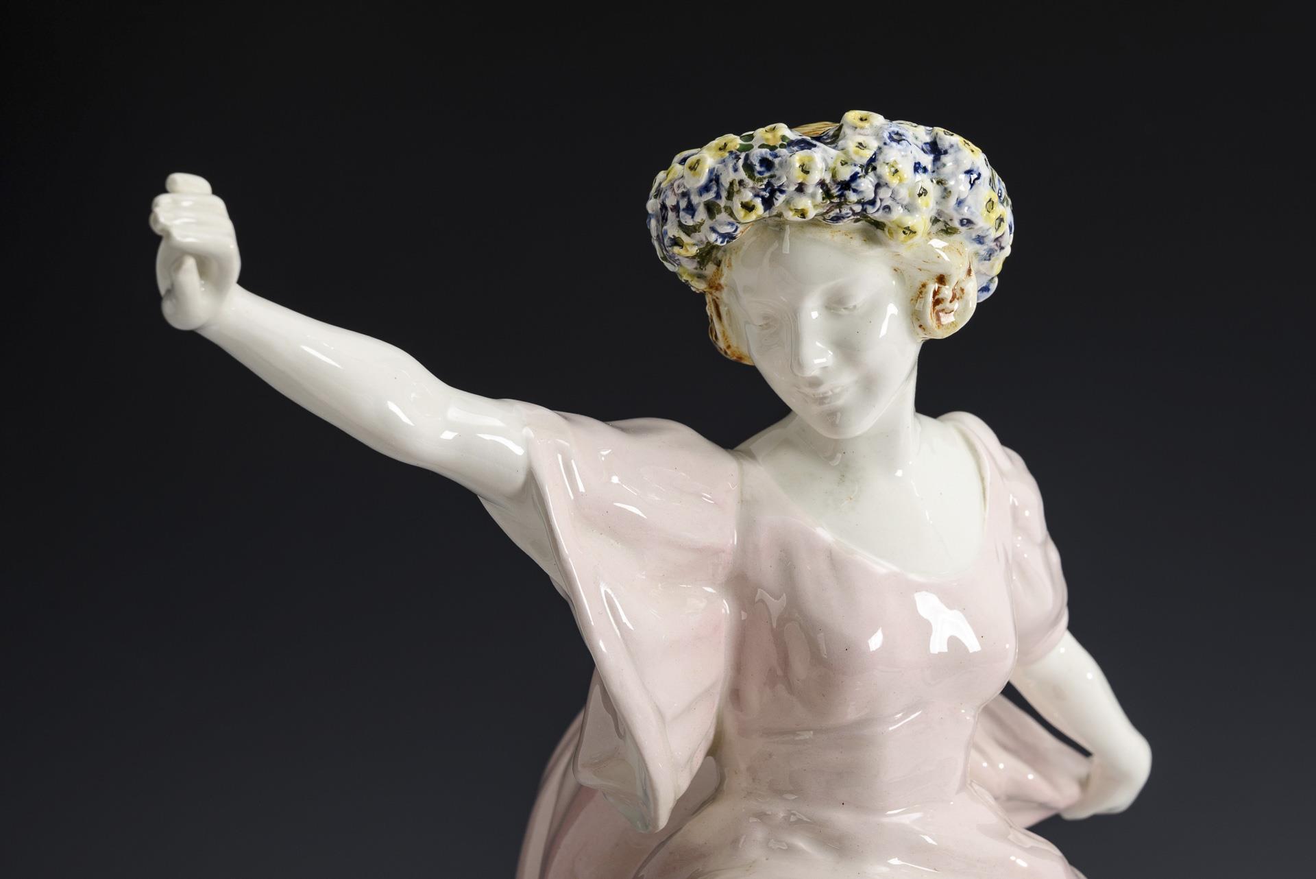 Jugendstil-Figur "Tanzendes Mädchen mit Blumenkranz im Haar". Wiener Manufaktur Friedrich Goldscheider.