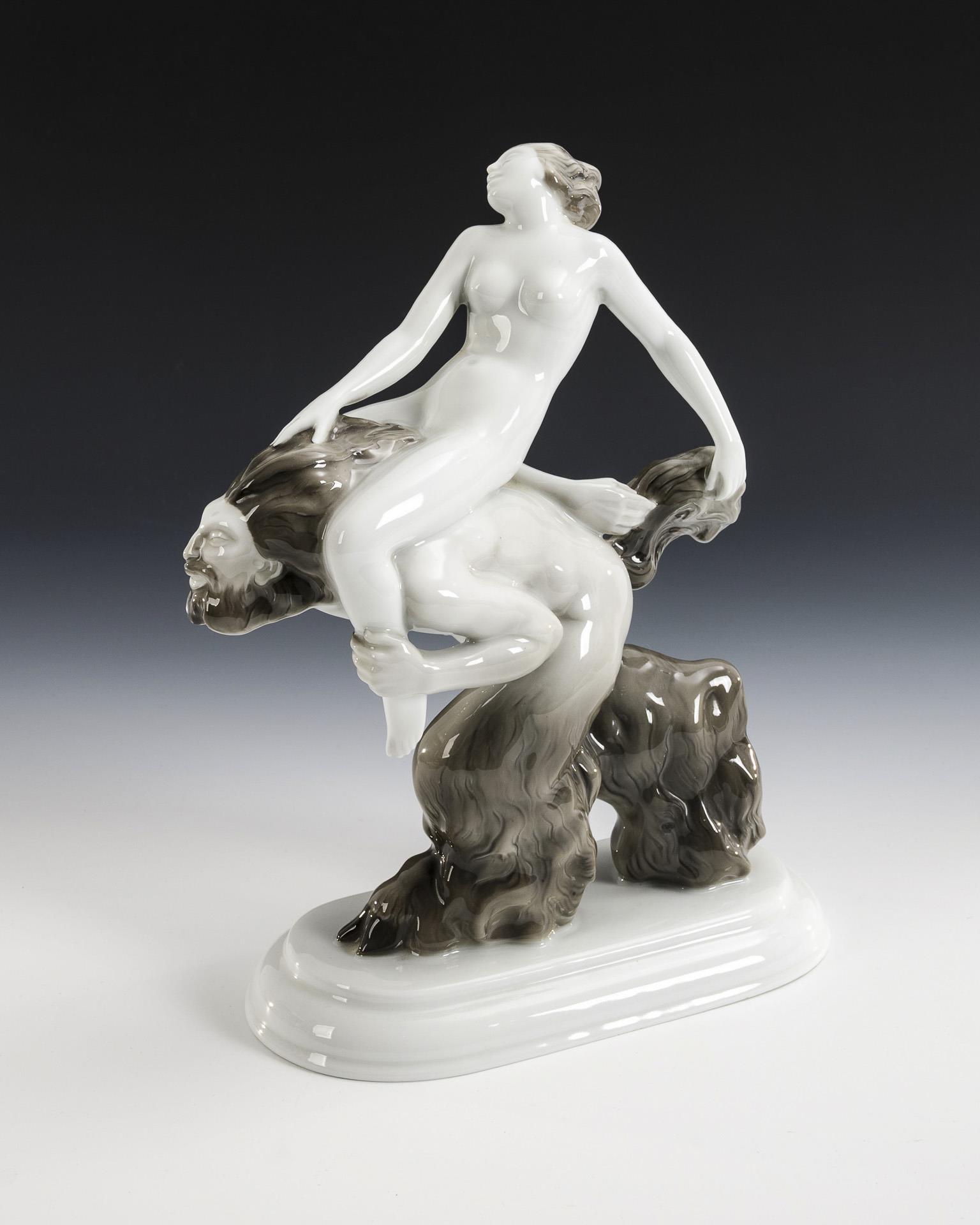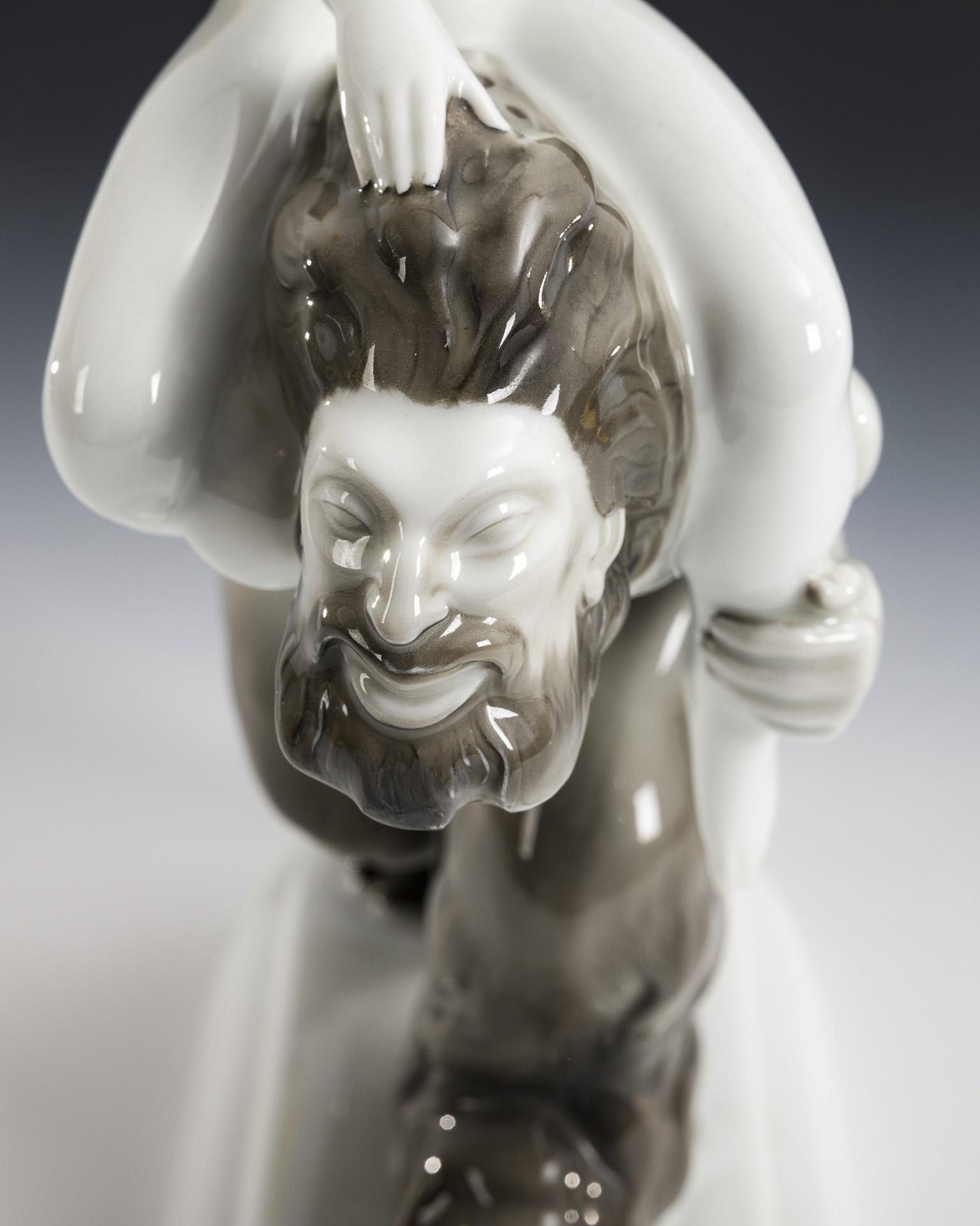 Auf einem Faun reitender Frauenakt.