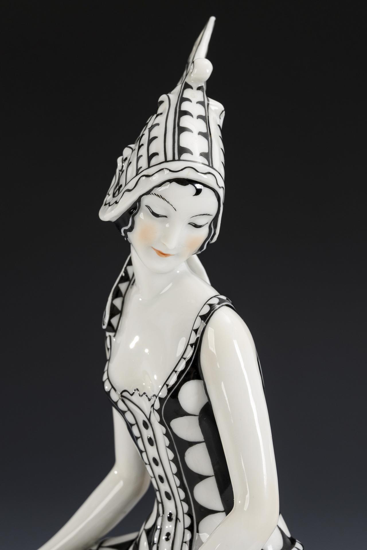 Überwiegend schwarz-weiß staffiert. H 26,5 cm.