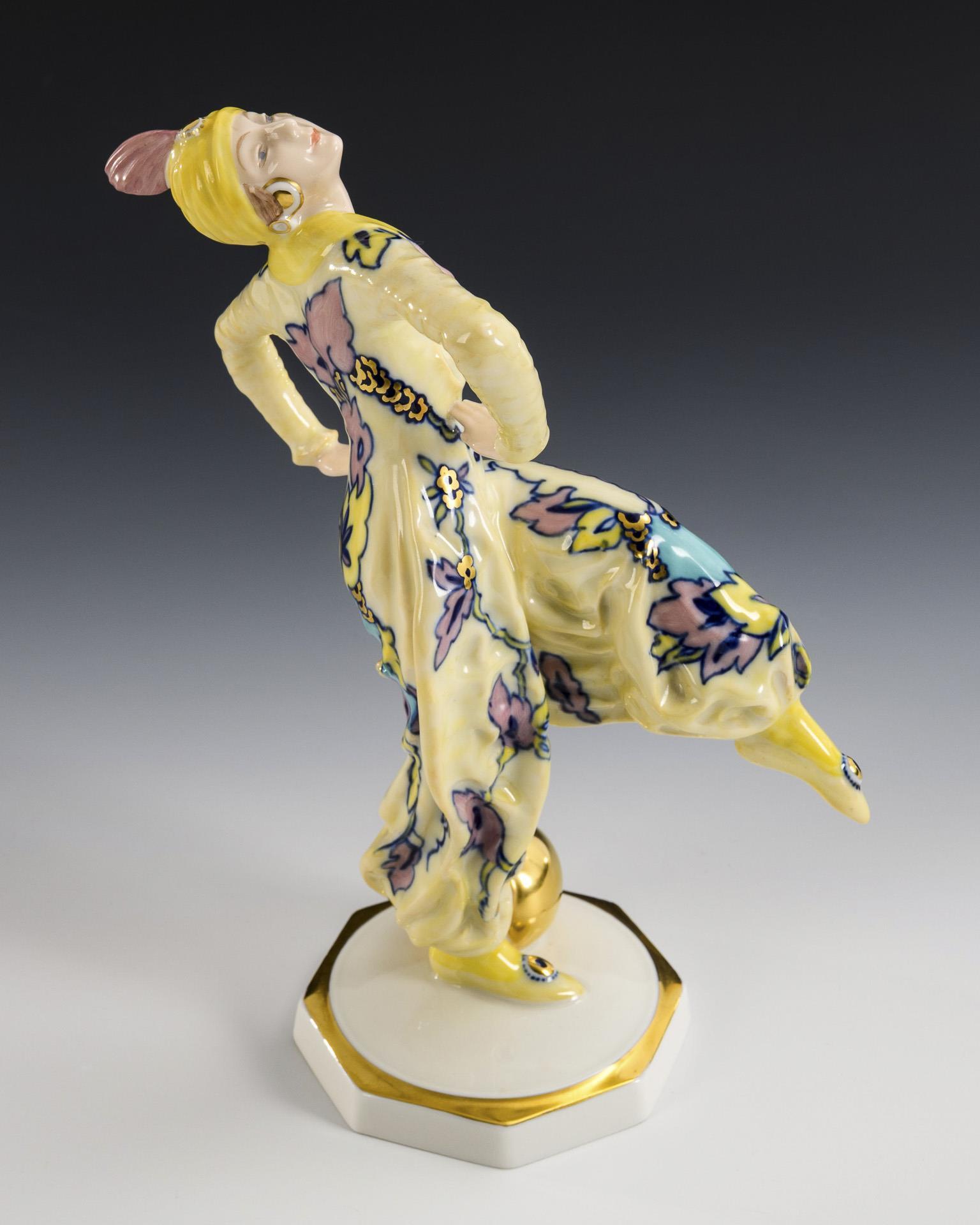 Art-déco-Tänzerin mit Kugel. Hutschenreuther.