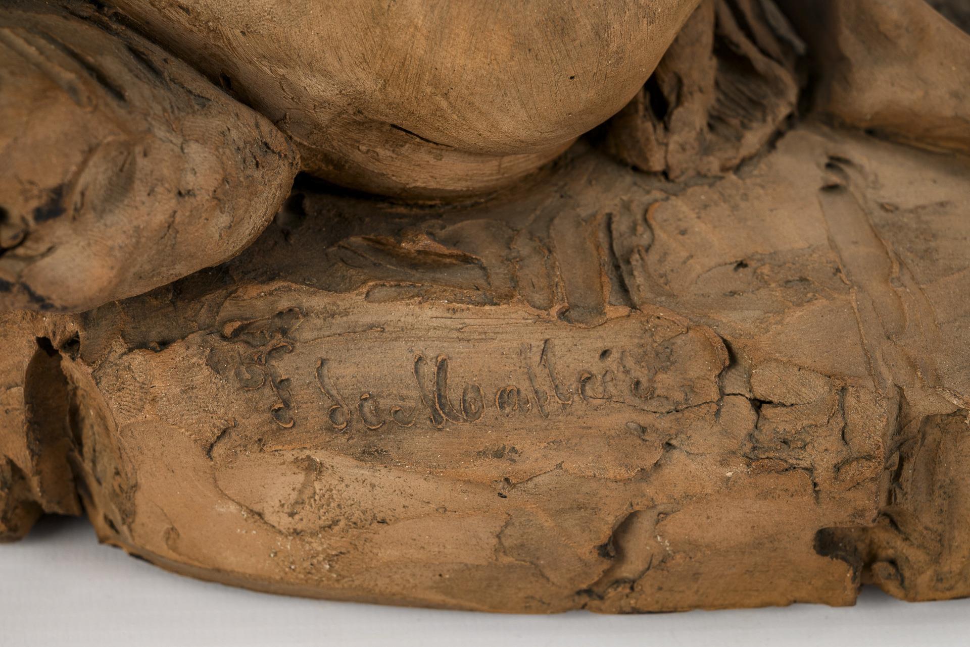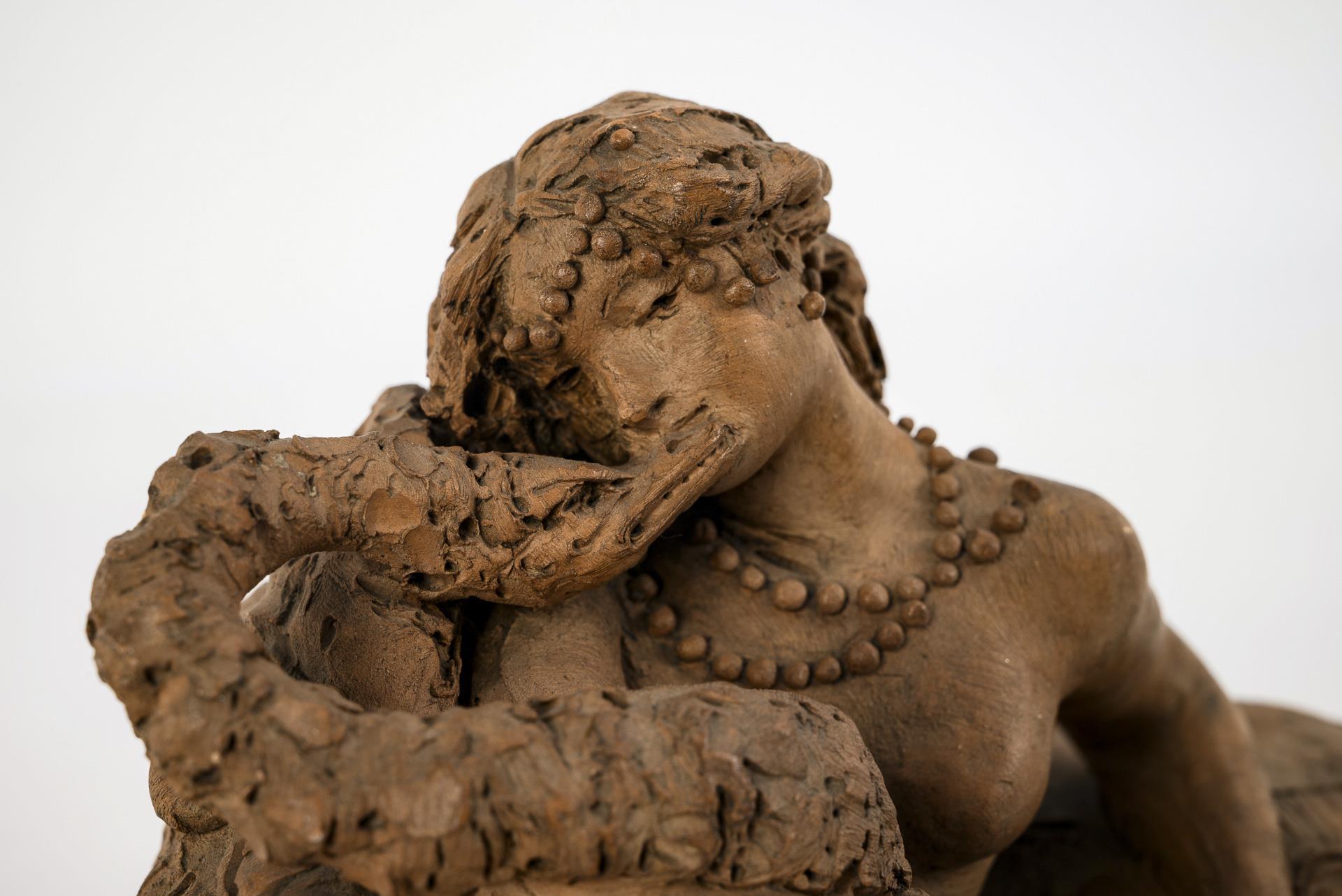 Terrakotta modelliert. 18,5 x 28,5 x 14,5. 2,7 kg.
