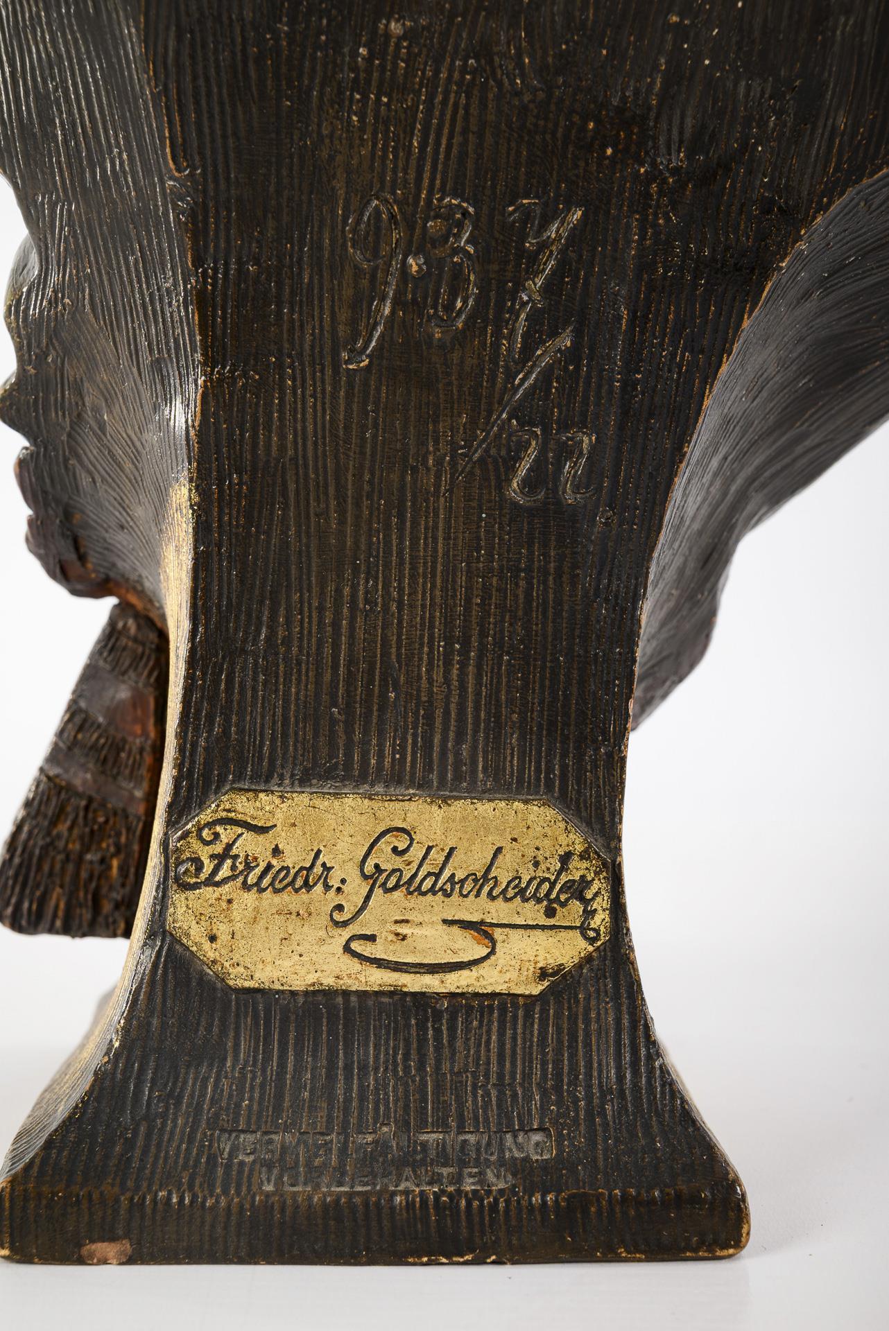 Kleine Jugendstil-Terrakotta-Büste "Nordafrikanerin". Wiener Manufaktur Friedrich Goldscheider.
