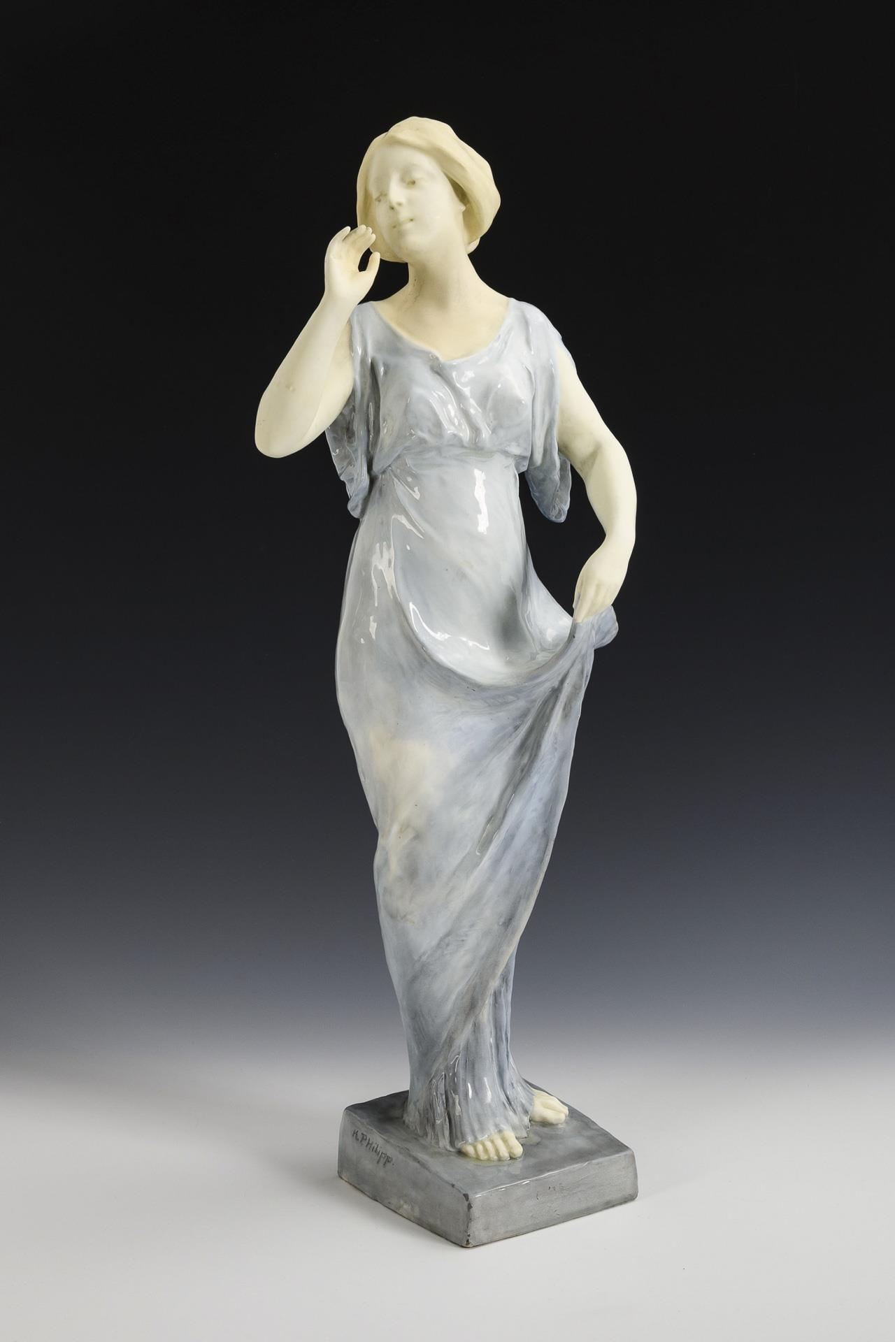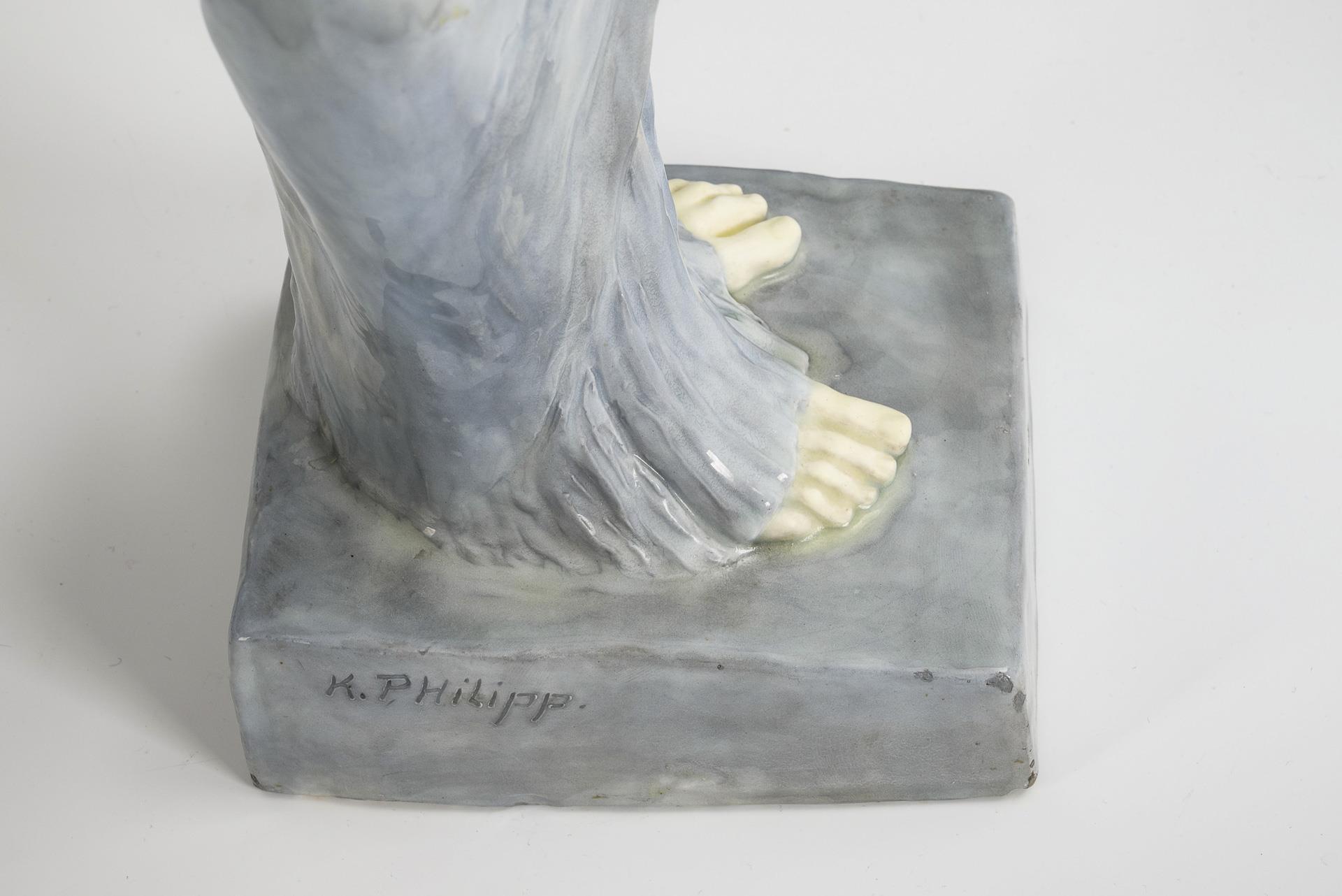 Prägemarke mit Zusatz "Deposé", ca. 1900 bis vor 1927. Um 1910. Am Sockel signiert "K. Philipp".
