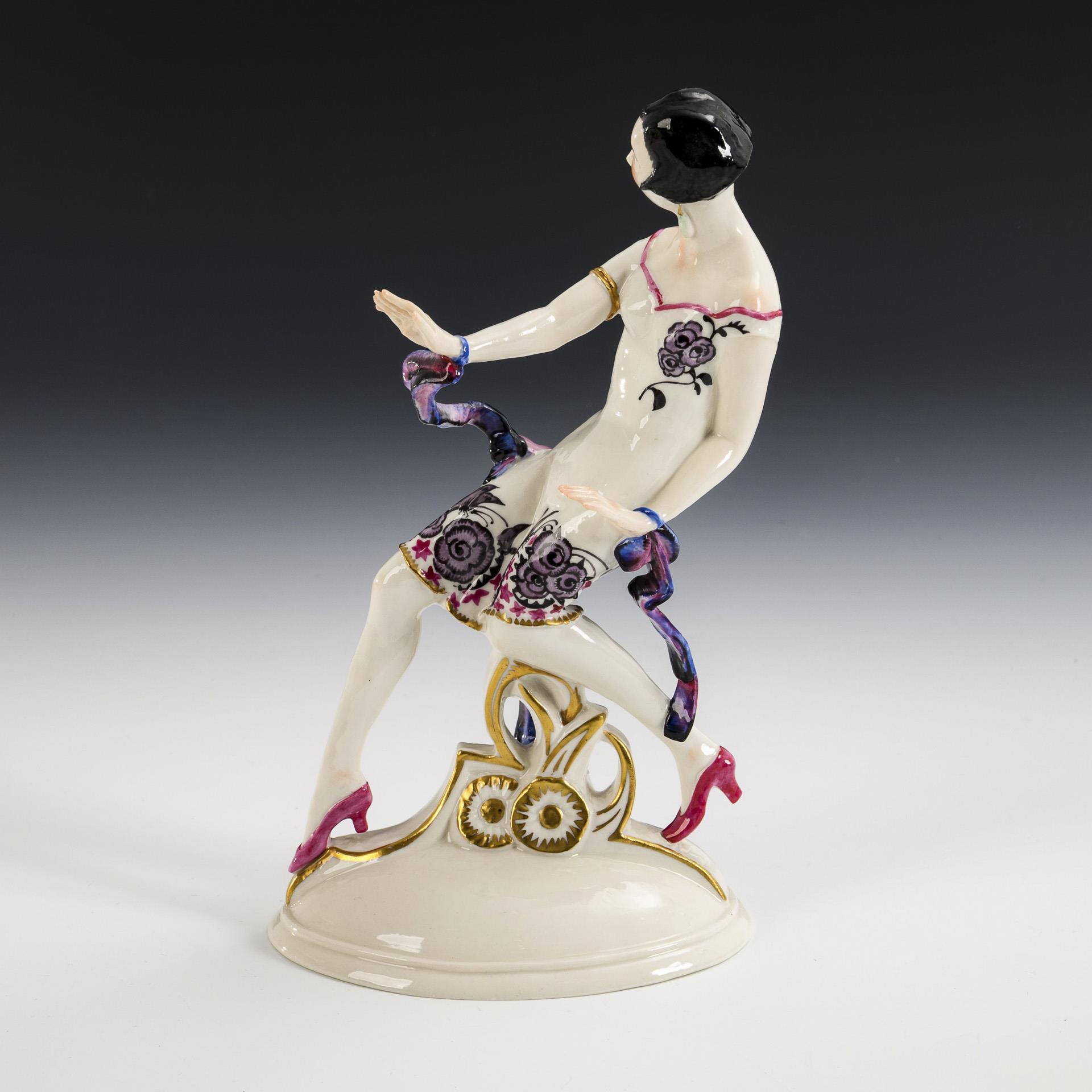 Art-déco-Figur: Tänzerin mit Tüchern am Handgelenk. Schwarzburger Werkstätten.