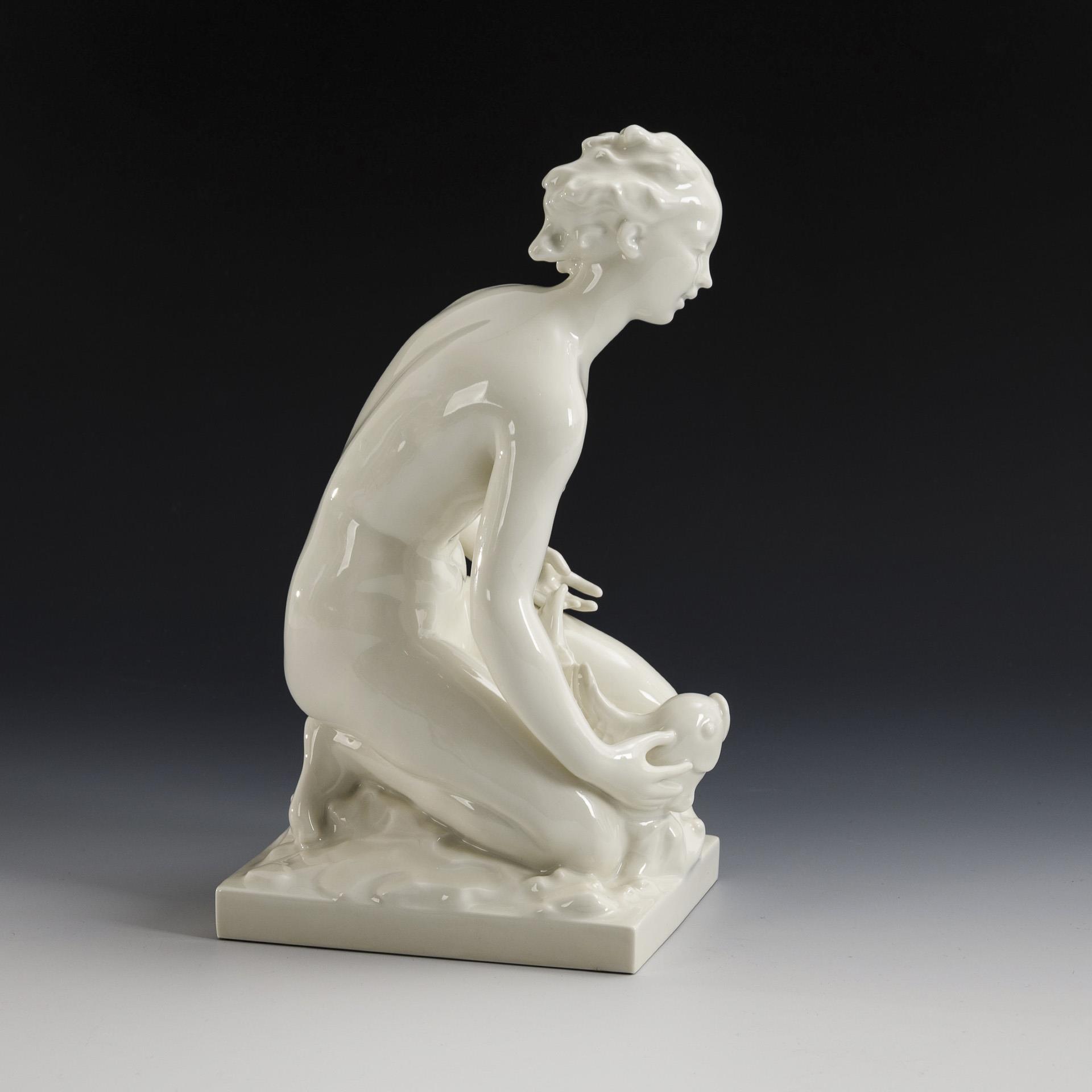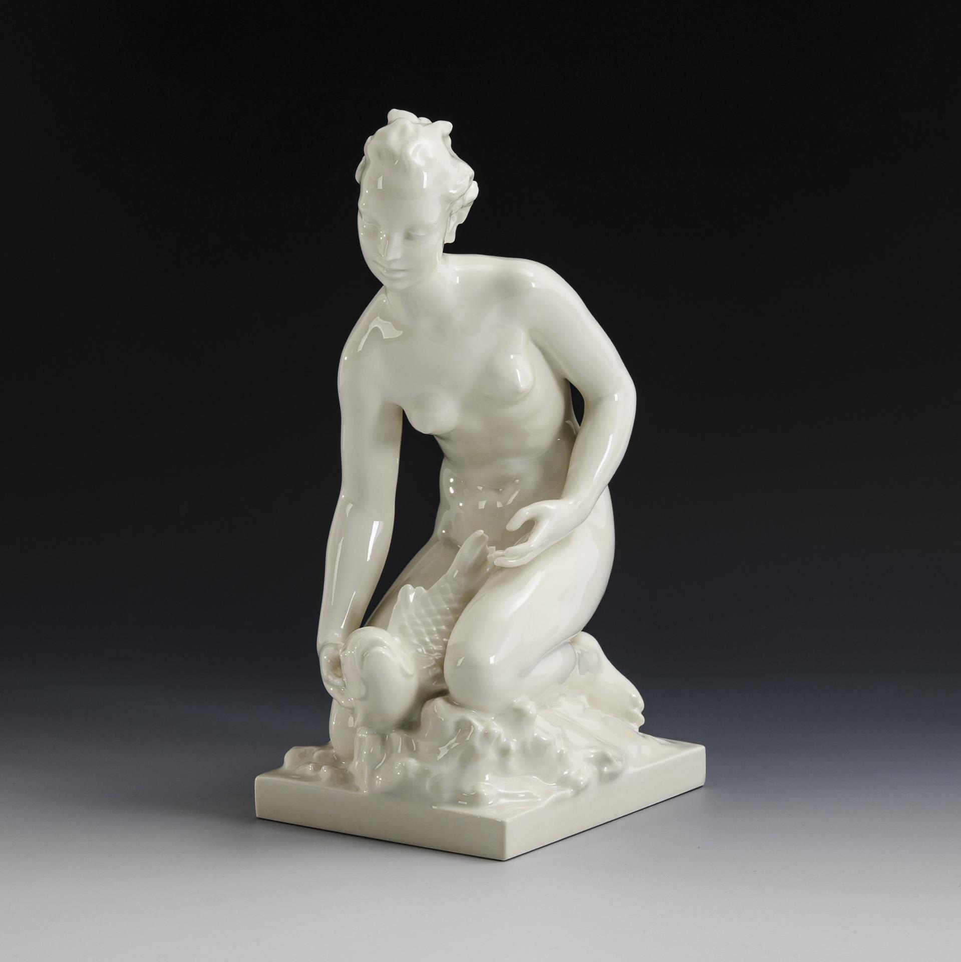 Frauenakt mit Fisch. KPM Berlin.