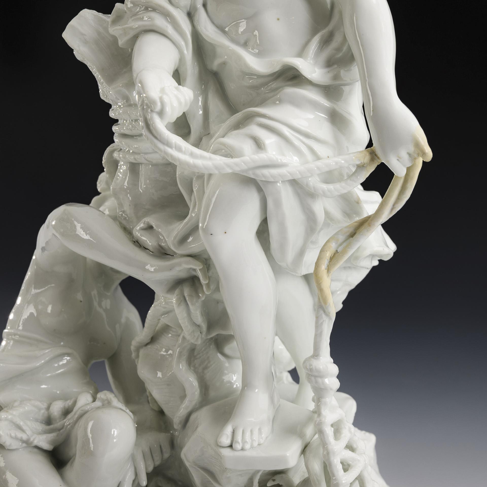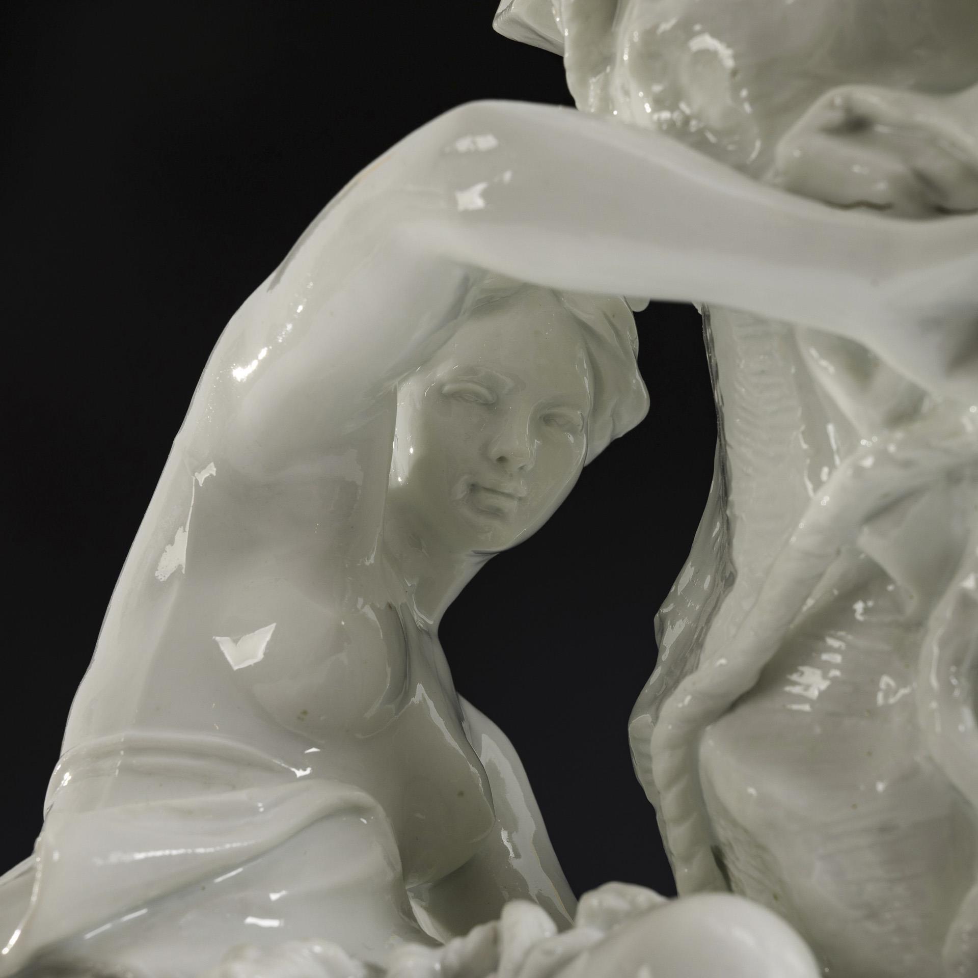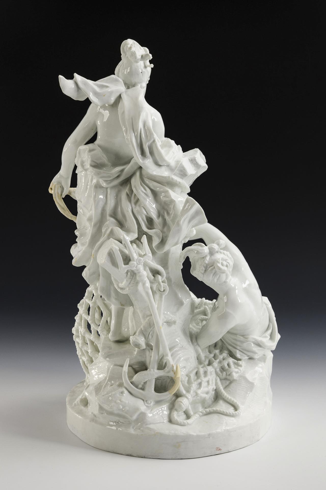 Große Gruppe von zwei Nymphen, einen Triton und einen Fisch im Netz fangend. Unterseitig kurzer Haarriss im Sockelboden, 1 Krebsschere, 1 Ankerspitze und Seil restauriert.