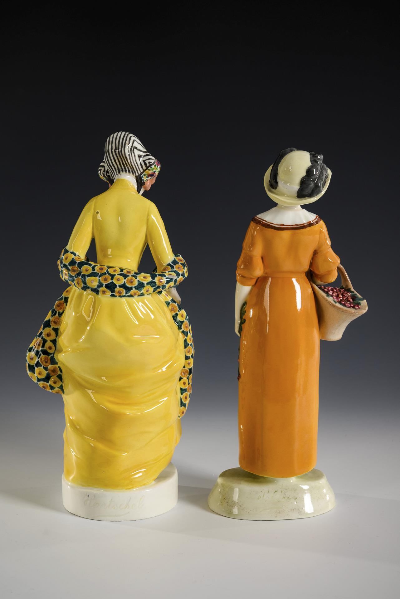 Sie befinden sich hier: Startseite Kategorien Keramik 2 Jugendstil-Figuren: Biedermeier-Dame "Im Regen" und Dame mit Fruchtkorb