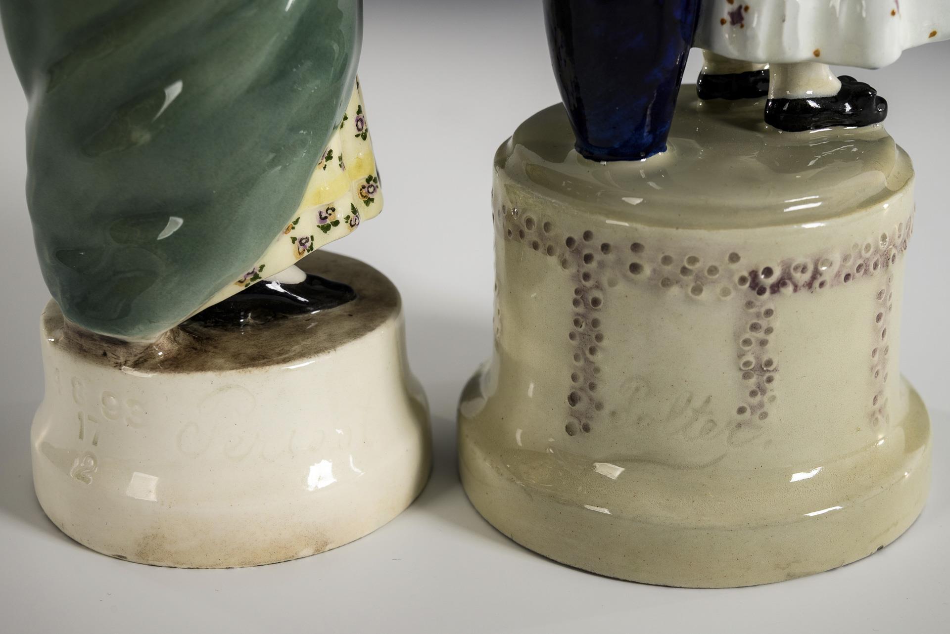 Fayence, farbig staffiert. H max. 21,5 cm.
