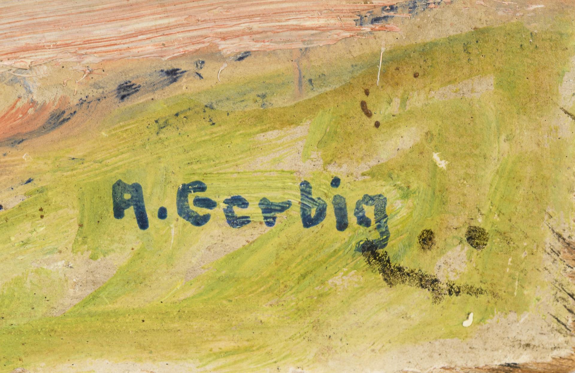 Alexander Gerbig war ein deutscher Maler und Grafiker. 1900 beginnt er mit dem Studium an der Dresdner Kunstgewerbeschule und arbeitet nebenher als Dekorationsmaler. Er ermutigt seinen Freund Max Pechstein, dies auch zu tun. Beide setzen ihr Studium schließlich an der Dresdner Kunstakademie fort. In dieser Zeit wohnten sie auch zusammen. Gerbig studierte dort bei R. Müller, Zwintscher und Kuehl und erhielt 1913 den Villa-Romana-Preis sowie ein Jahresstipendium der Stadt Florenz. Zeitlebens bestand ein enger Briefkontakt mit regelmäßigen Treffen zwischen ihm und Pechstein.