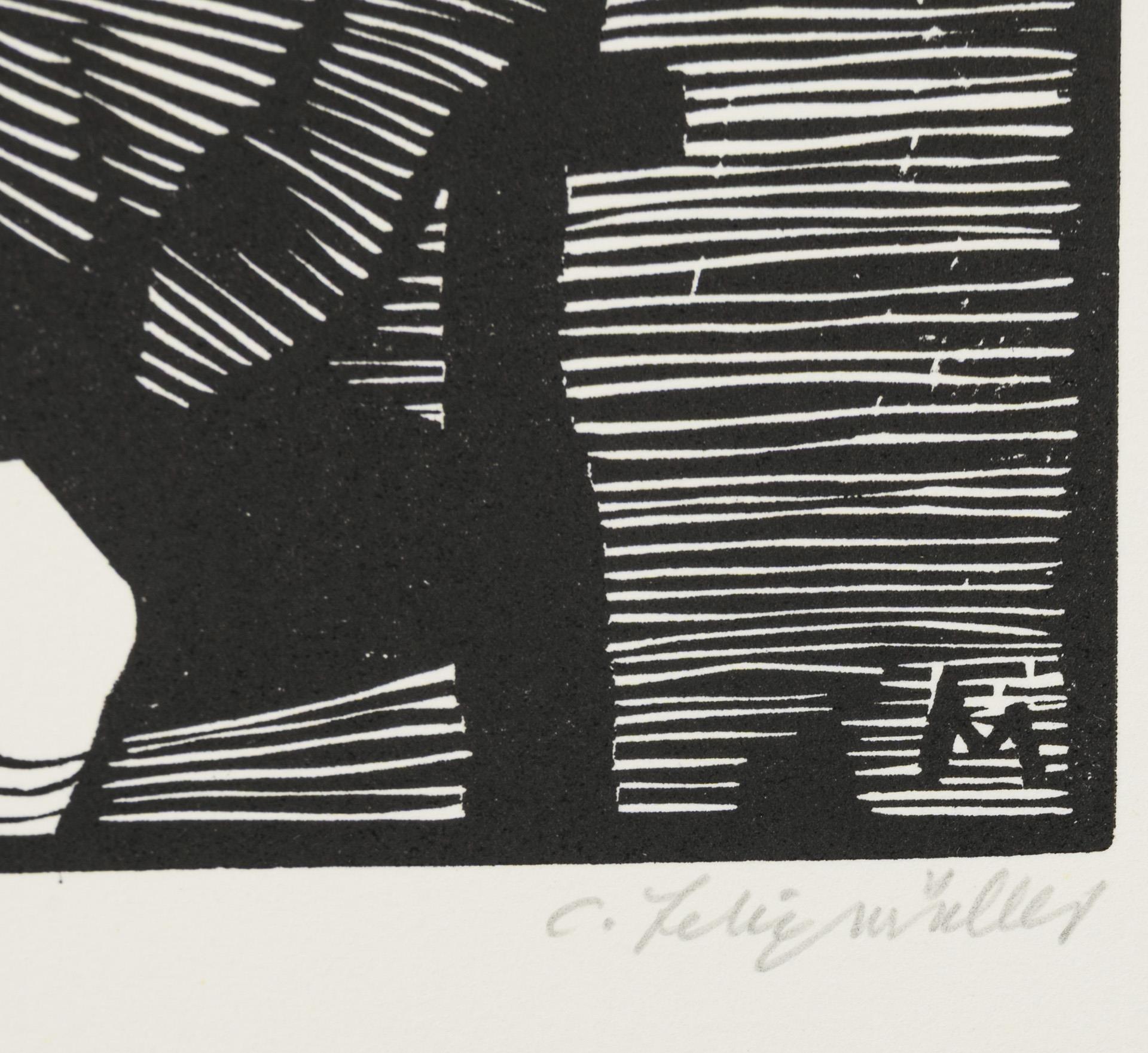 Holzschnitt. Rechts unter dem Stock Bleistiftsignatur, nummeriert 77/100, Im Stock Monogramm.