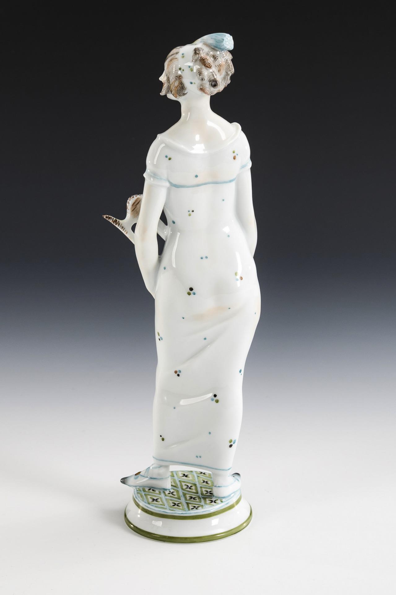 Auf einer Rundplinthe stehende, im Stil des Empire gekleidete junge Frau mit Lyra.