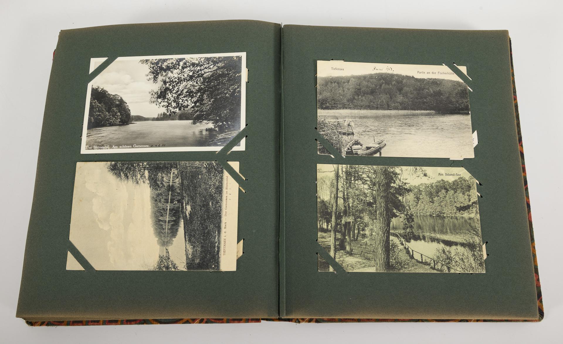 Ca. 331 Ansichtskarten plus einige jüngere Fotos: darunter Ostpreußen, Ostsee, Mecklenburg, Riesengebirge, Berliner Umland und anderes. Auch "Gruß aus ..." Karten, im "Grüße aus der Ferne"-Album, 26 x 36 cm.
