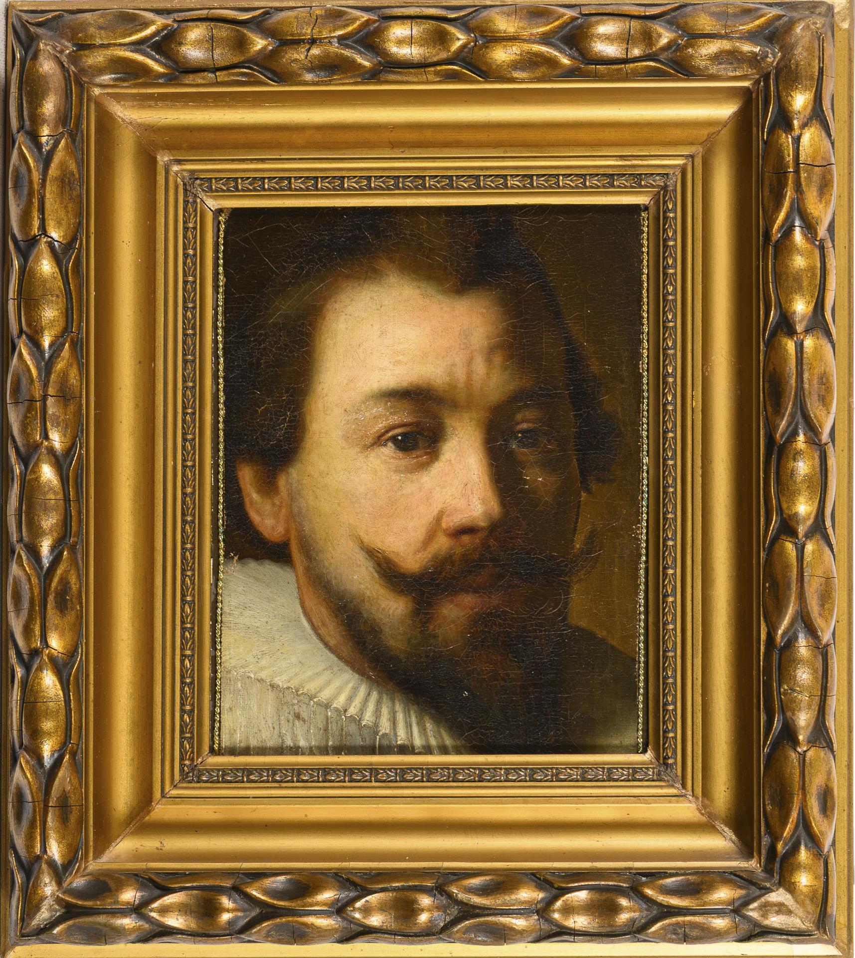 Porträt eines Mannes in der Kleidung und Bartmode des 17. Jahrhunderts. Leinwand beschnitten.