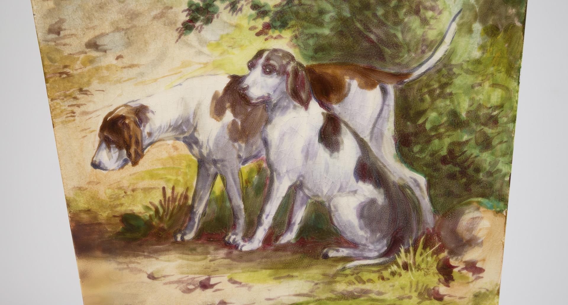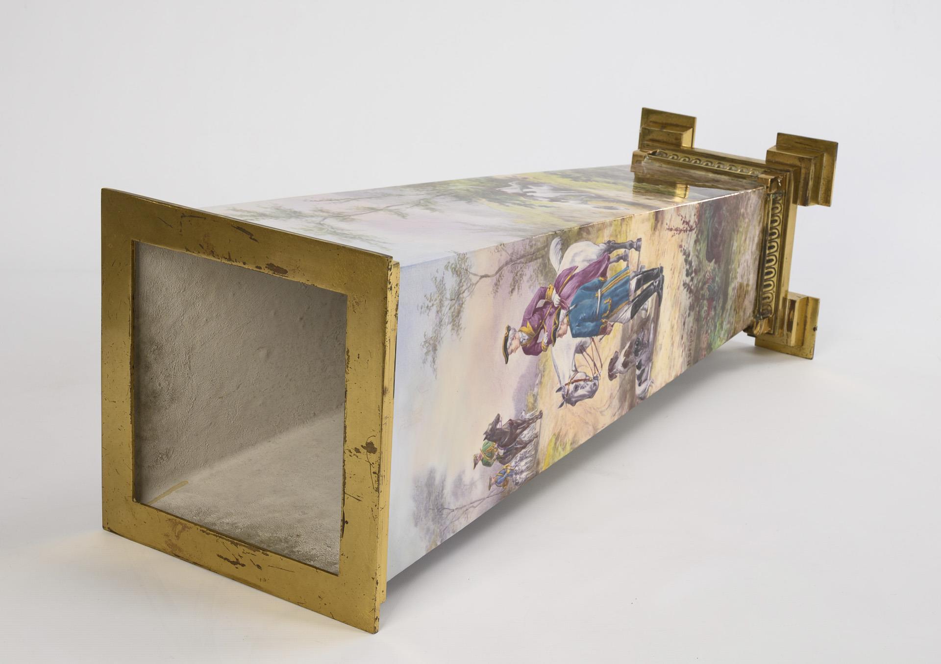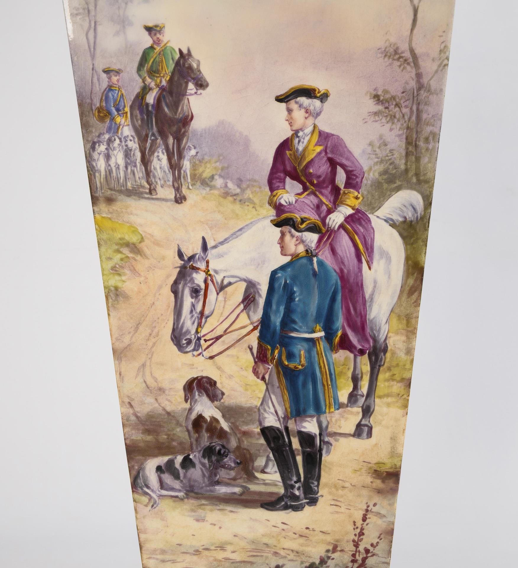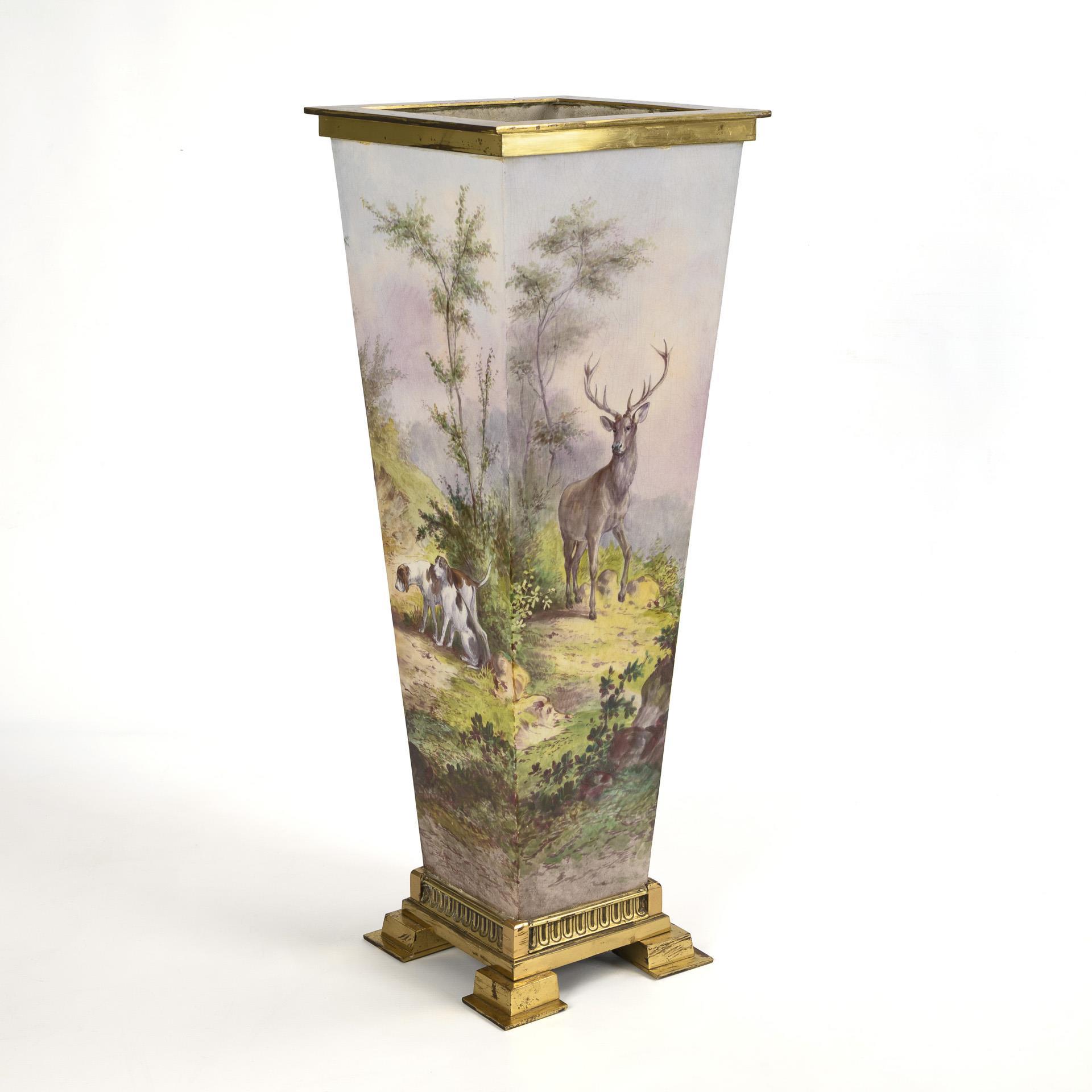 Schirmständer mit historisierendem Jagdmotiv.
