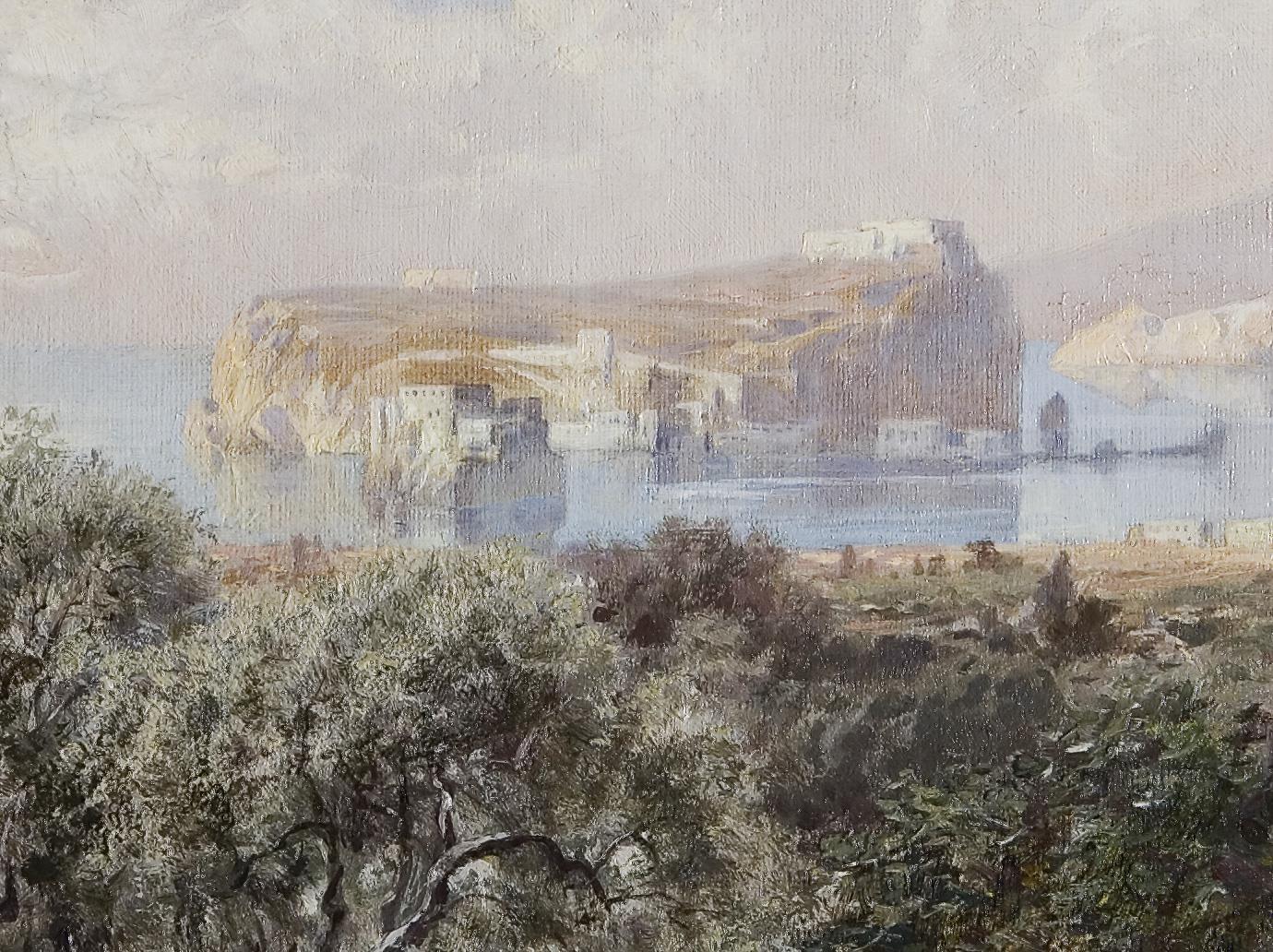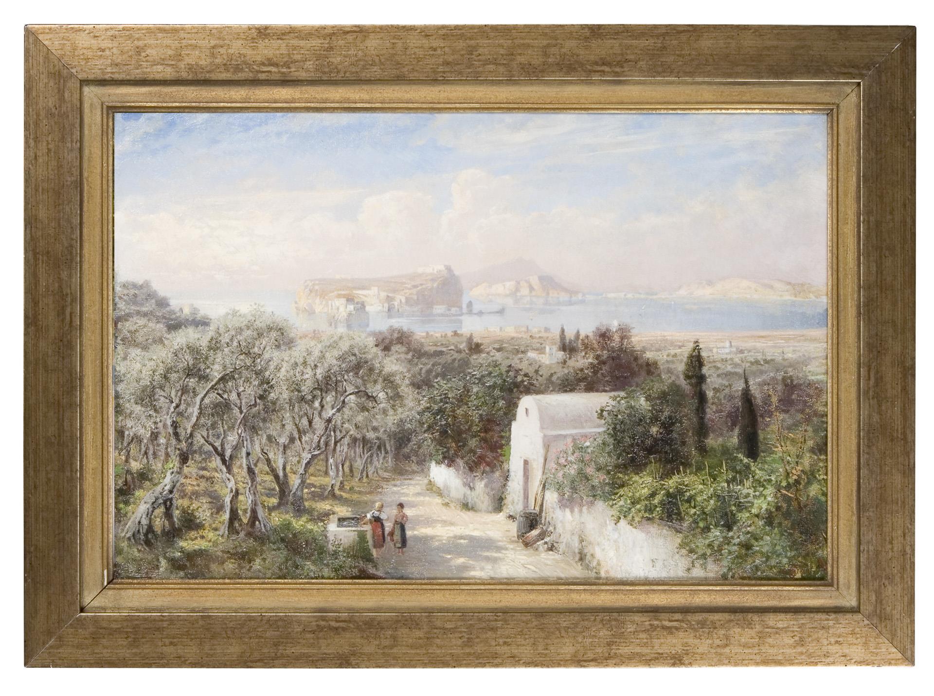 Detailreich gemalte lichtdurchflutete Ansicht in weich differenzierter Farbigkeit. Italien war wegen der malerischen Reize des Südens das gelobte Land diverser Künstler. Neuwertiger Rahmen.