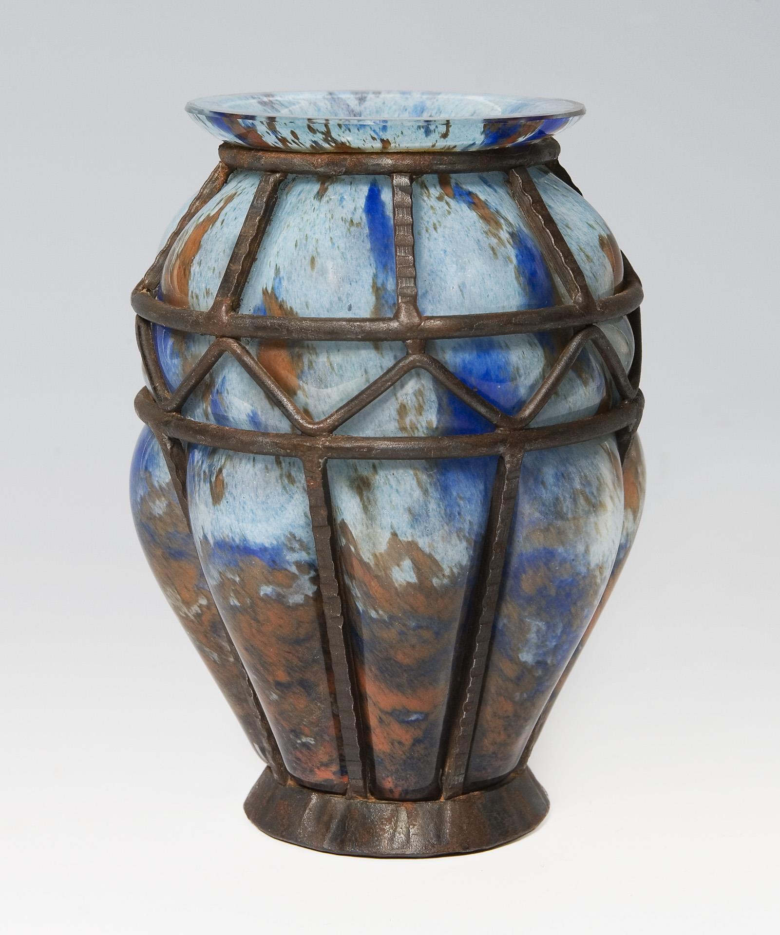 Art déco-Vase mit Eisenmontierung. Daum Fréres & Louis Majorelle, Nancy.
