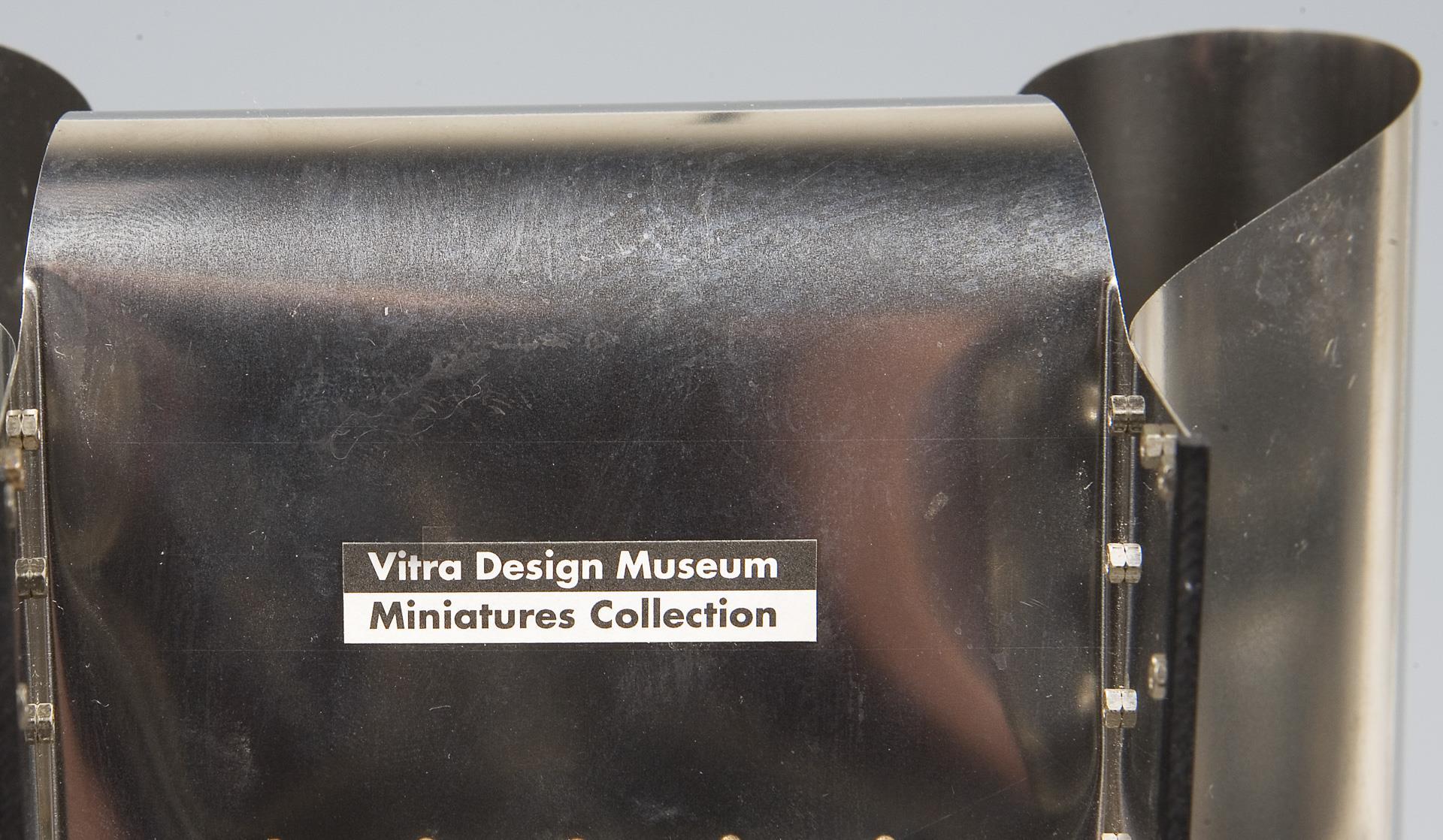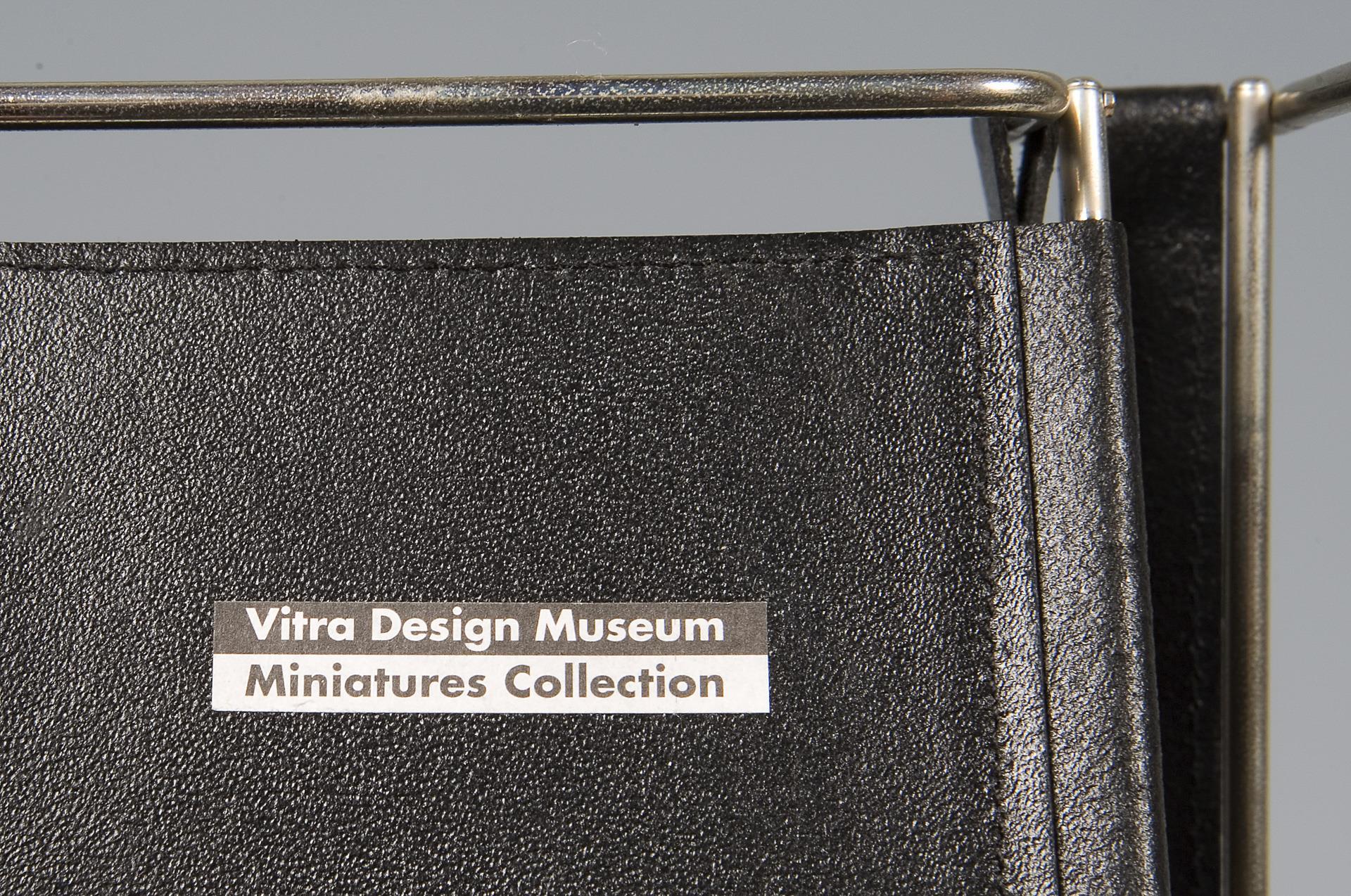 Vitra Design Museum, Weil am Rhein, Miniatures Collection.Von links nach rechts: LCM-Stuhl, Modell-Jahr: 1945-1946 und DSW-Stuhl (Dining Sidechair Wood base), Modell-Jahr: 1950-1953, Modelle von Charles & Ray Eames (Charles Eames, 1907-1978 und seine Frau Ray Eames, 1912-1988). Well Tempered Chair, Modell-Jahr: 1986 und Tom Vac Chair, Modell-Jahr: 1997, Modelle von Ron Arad (* 1951 Tel Aviv). Clubsessel B 3 (Wassily-Chair), Modell-Jahr: 1925, Modell von Marcel Breuer (1902-1981). 2 Firmen-Etiketten (Vitra-Preis: 1373,- Euro).