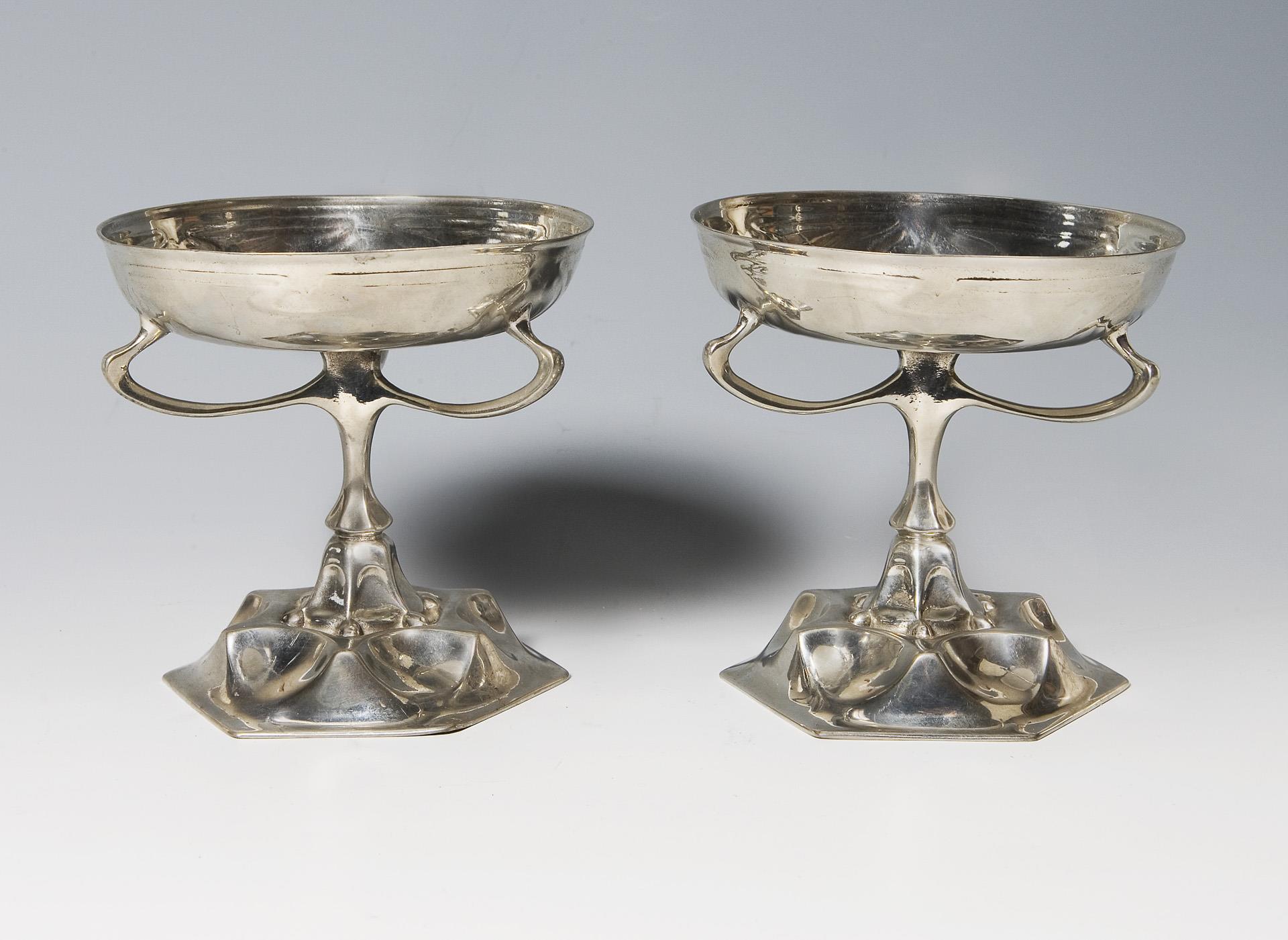 Paar Jugendstil-Fußschalen. Walter Scherf, Metallwarenfabrik für Kleinkunst, Nürnberg.