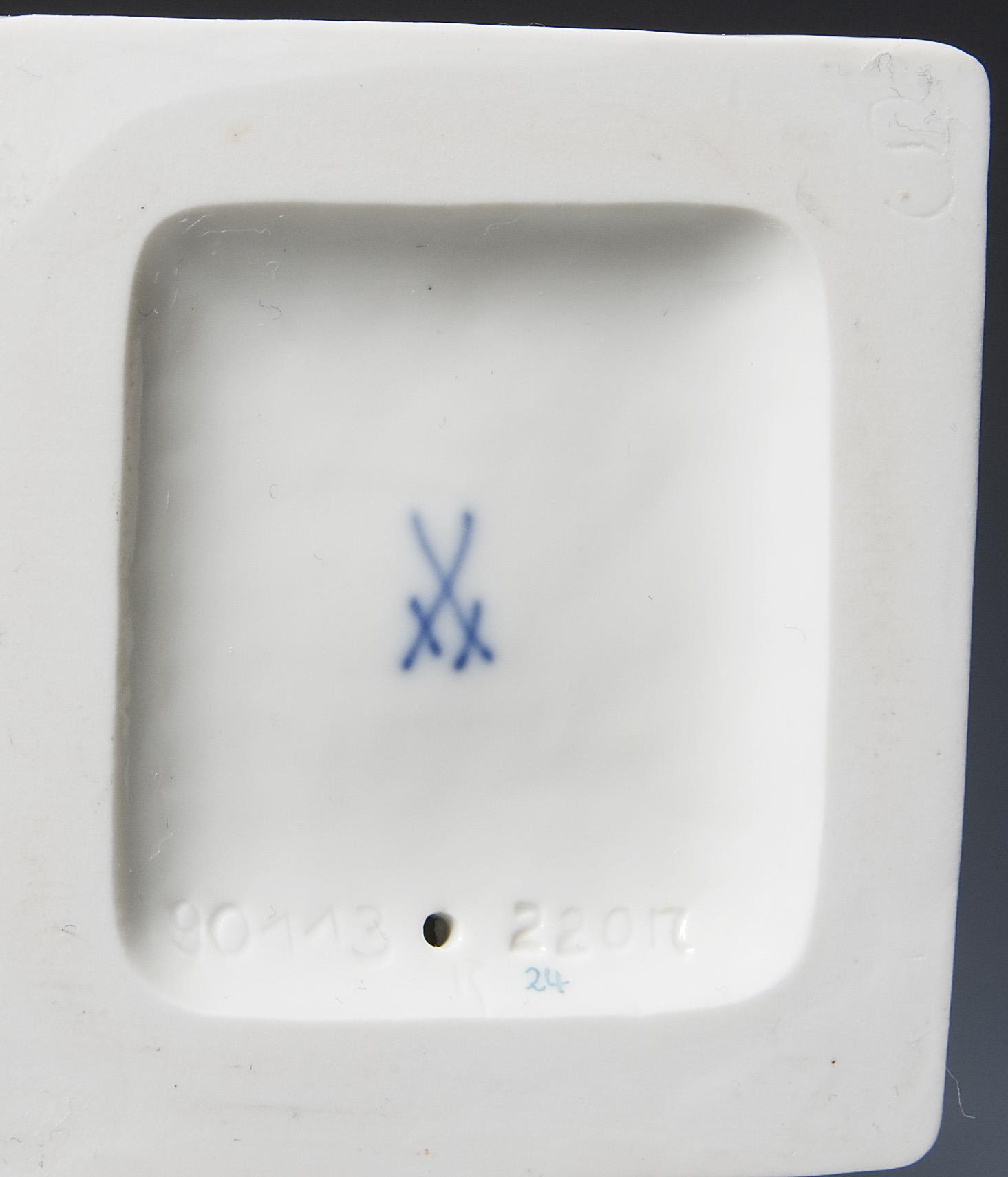 Dekor von Gudrun Gaube, farbig bemalt, gold staffiert. Pressmarken, Malermarke, Schwertermarke.