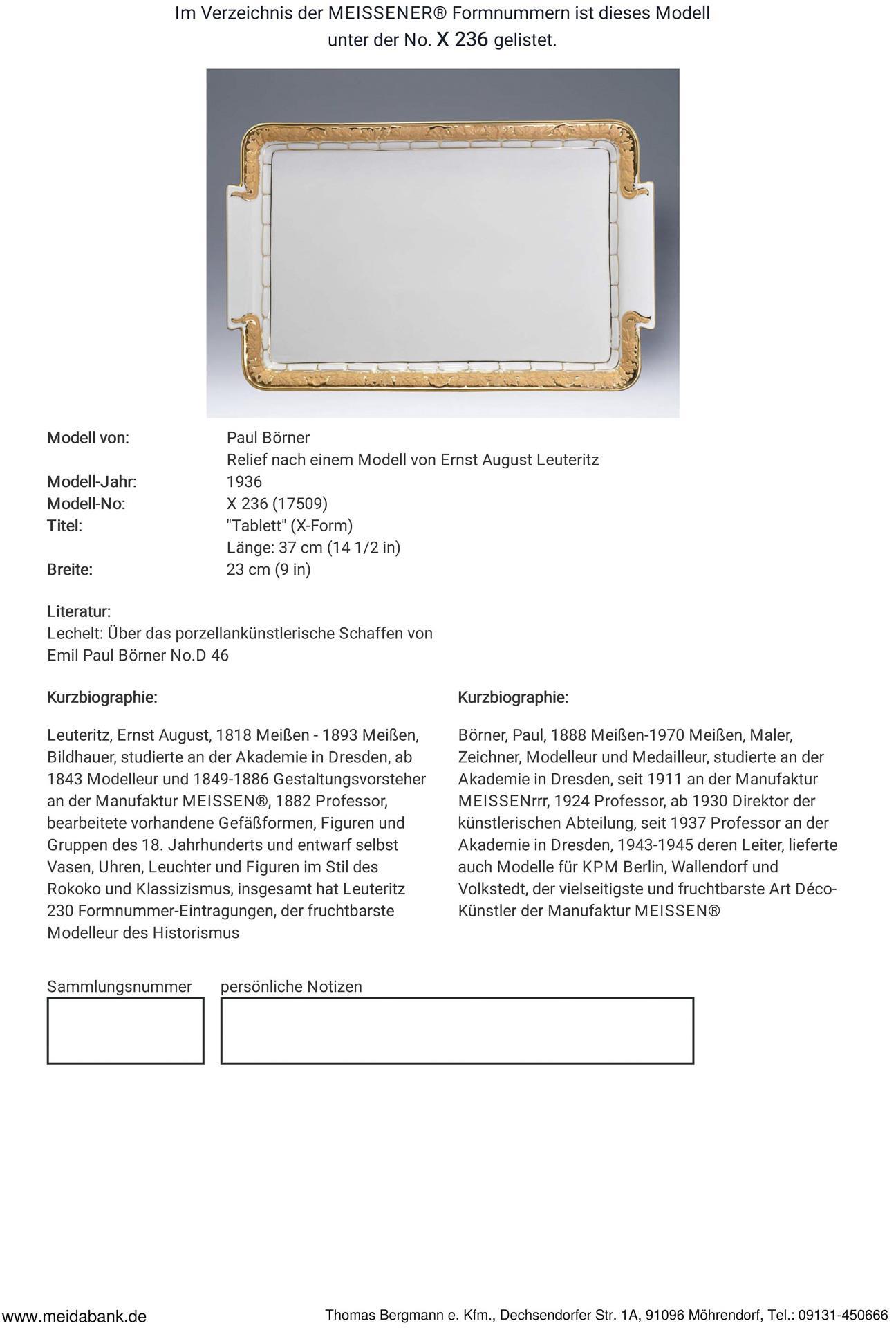Ausformung 1935-1947. Modell-Nr. X 236 (neue Form-Nr. 17509).