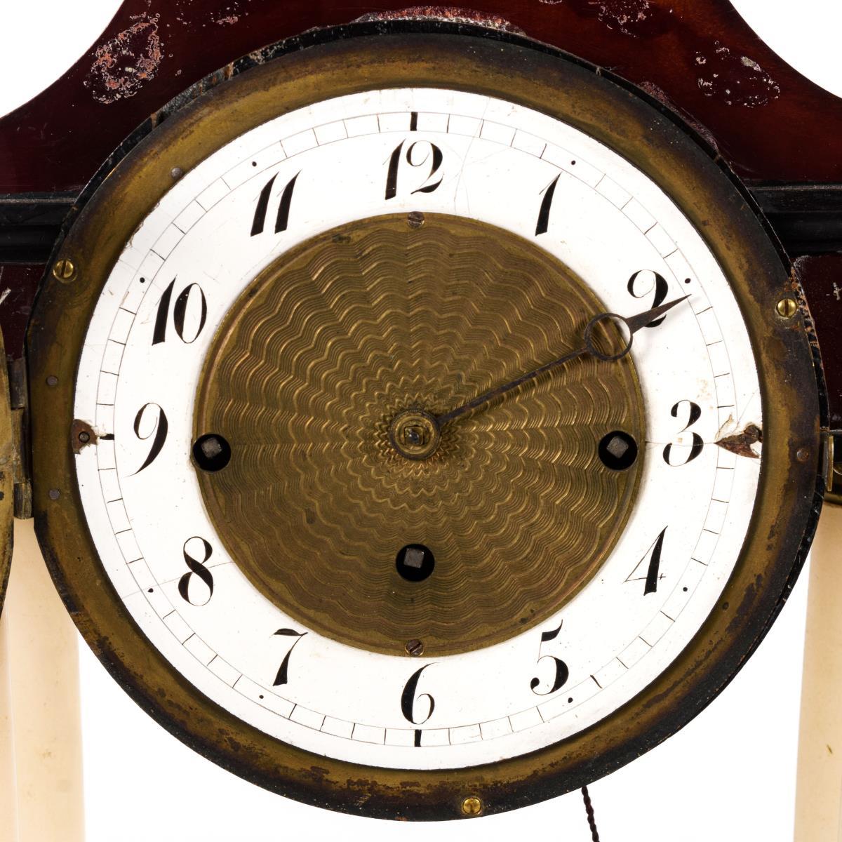 Biedermeier-Portaluhr mit 4 Alabastersäulen.