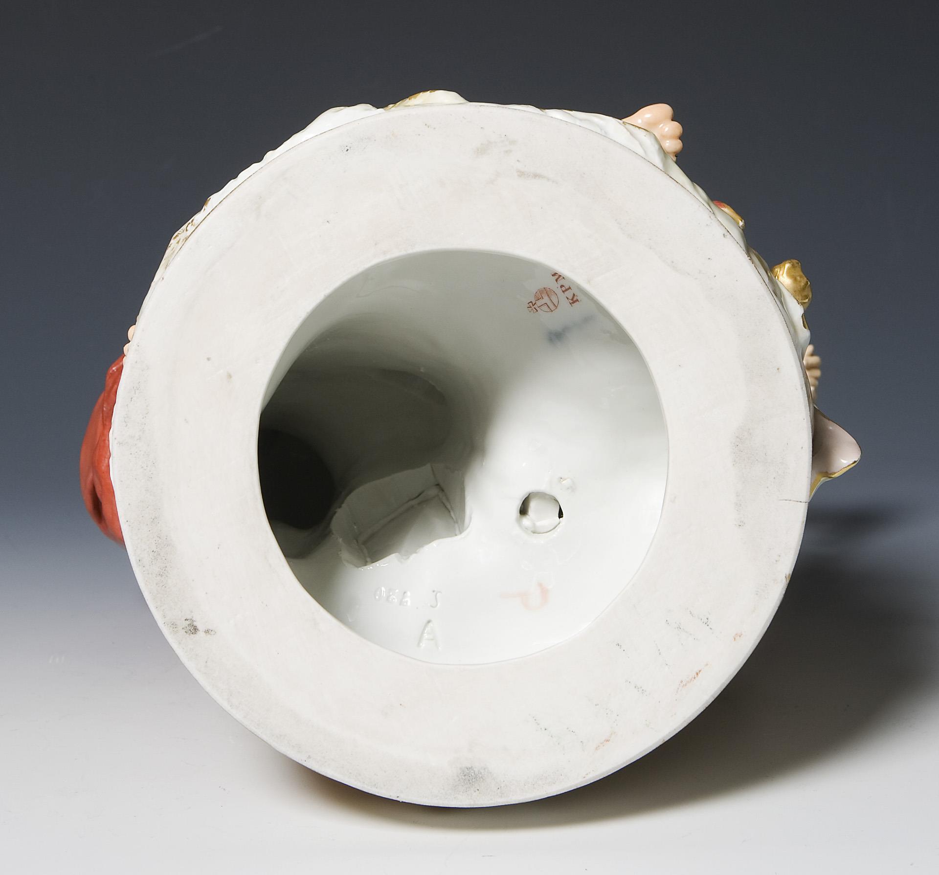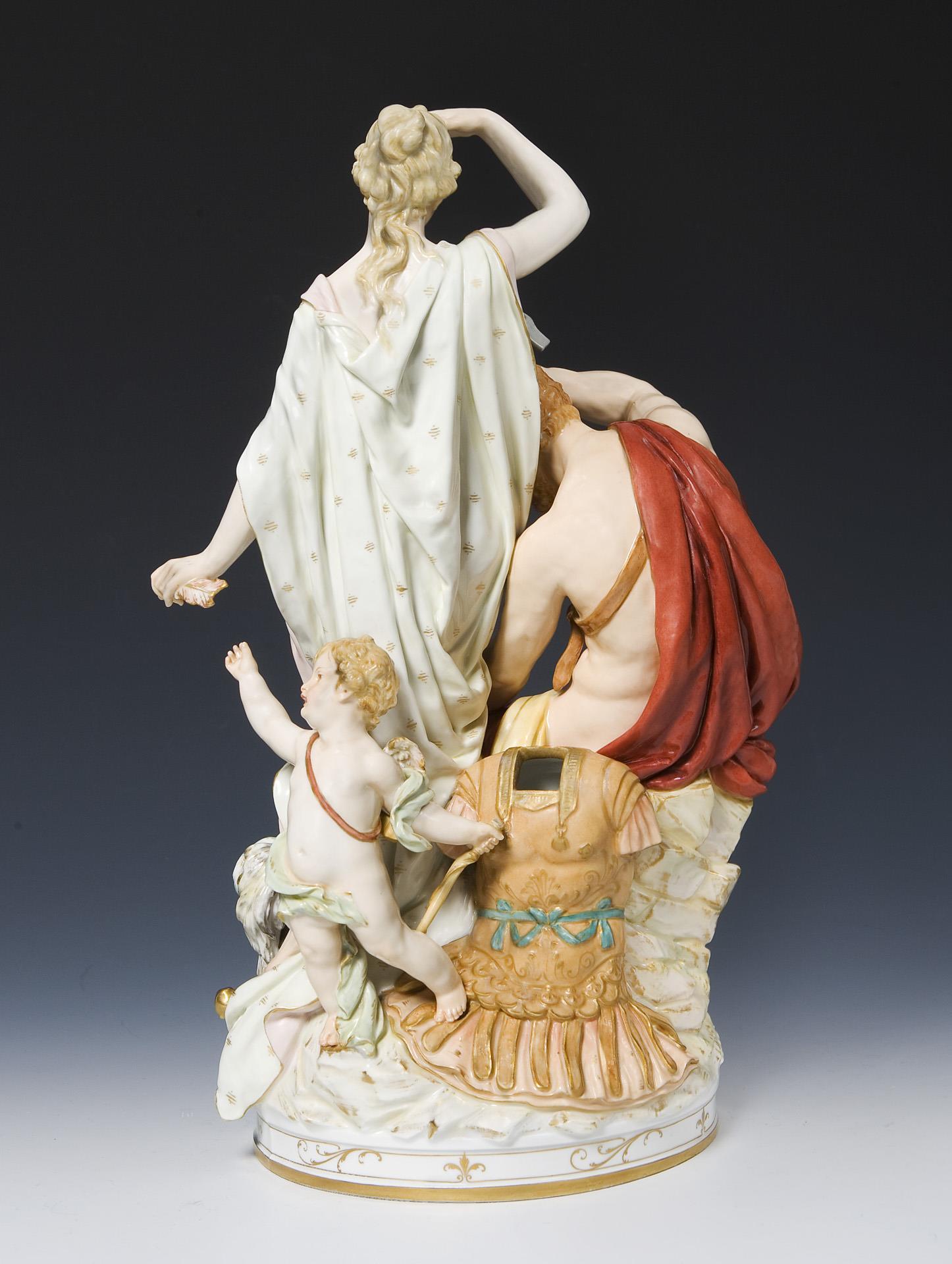 Vulkan, Gott des Feuers und der Schmiedekunst und Venus, Göttin der Liebe, sind zentrale Figuren der römischen Mythologie, Religion und Kultur. Farbig bemalt, gold staffiert. Pressmarke, blaue Zeptermarke, rote Reichsapfelmarke. Pfeilspitze der Venus, Bogen des Amor bestoßen.