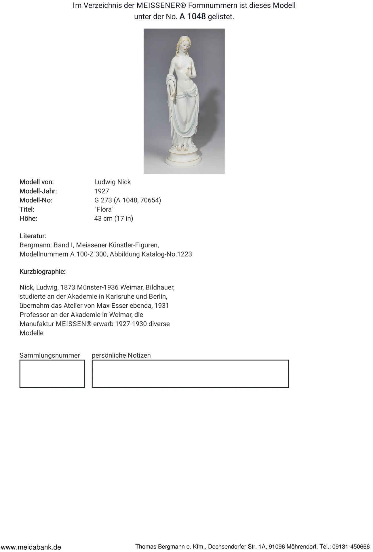 Ausformung 1927-1934. Modell-Jahr: 1927, Modell-Nr. A 1048 (G 273, neue Form-Nr. 70654). Modell von. NICK, Ludwig(1873 Münster - 1936 Weimar)