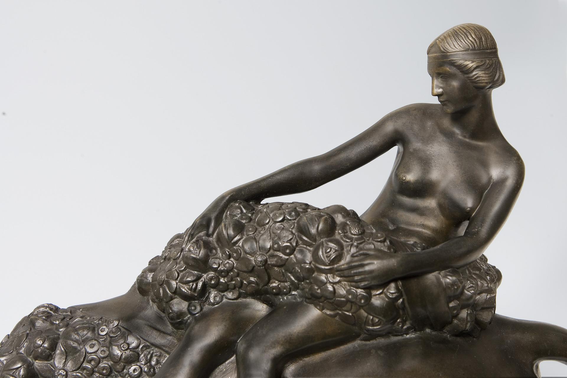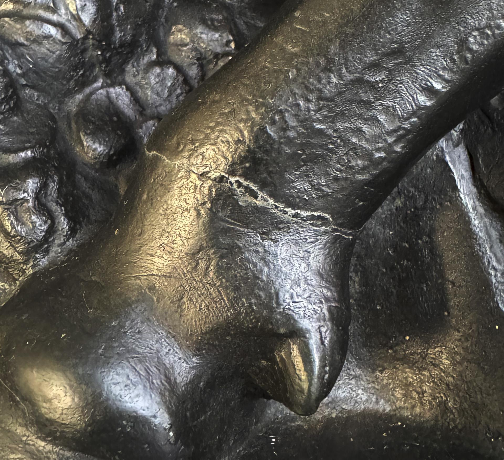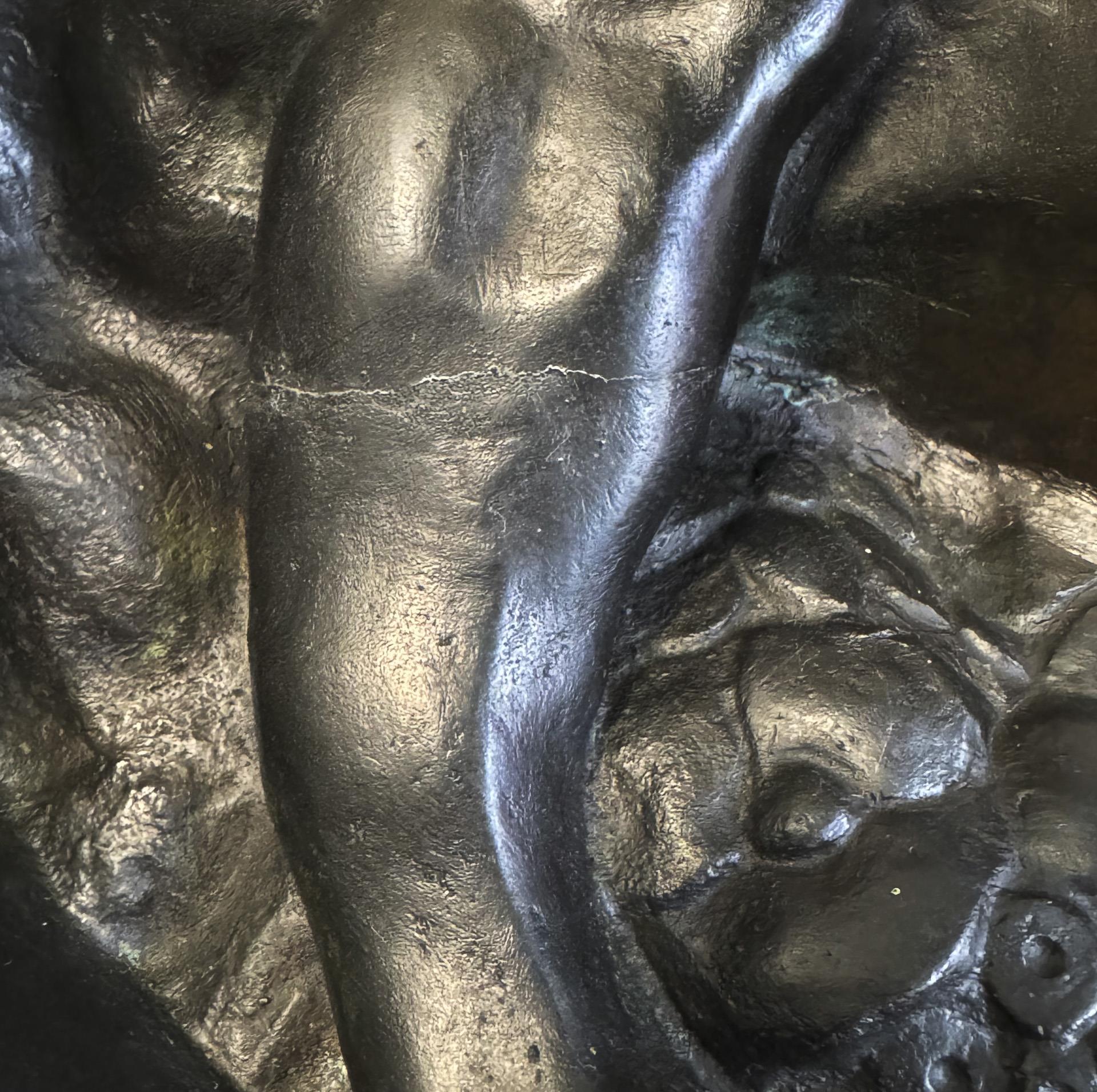 Bronze, dunkel patiniert. Höhe: 47 cm, Breite: 54 cm. 35,6 Kg.