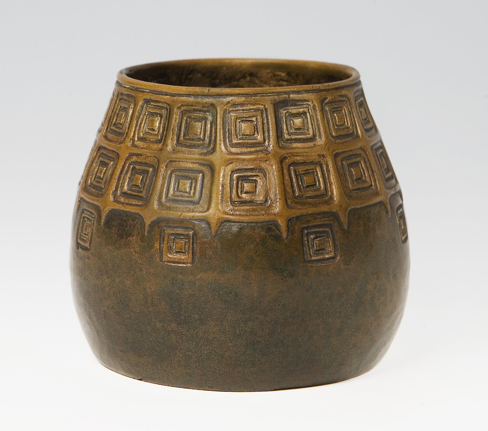 Jugendstil-Bronze-Vase mit Ornament-Relief