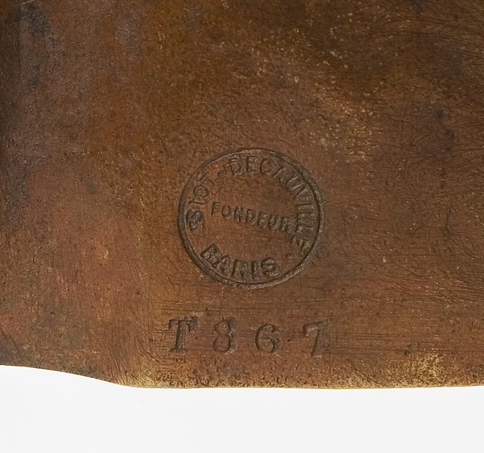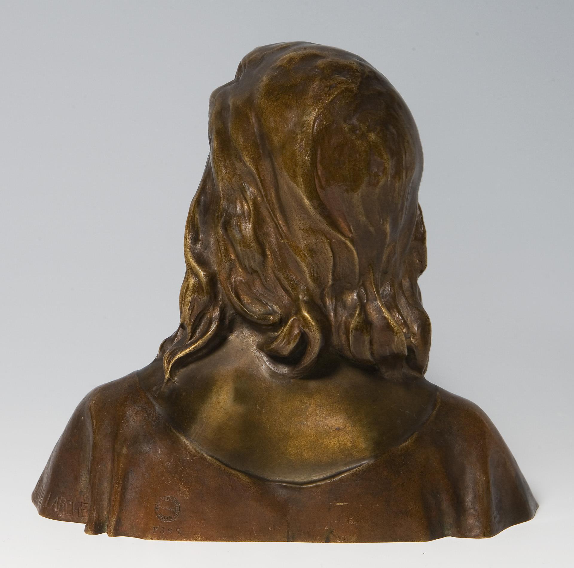 Seitlich Künstler-Signet, Pariser Gießerstempel: Siot Decauville, nummeriert: T 867. Die Büste entstand nach der ganzfigurigen Darstellung des 12-jährigen Jesus im Tempel, die Larche 1890 mit großem Erfolg im Pariser Salon ausgestellt hatte.