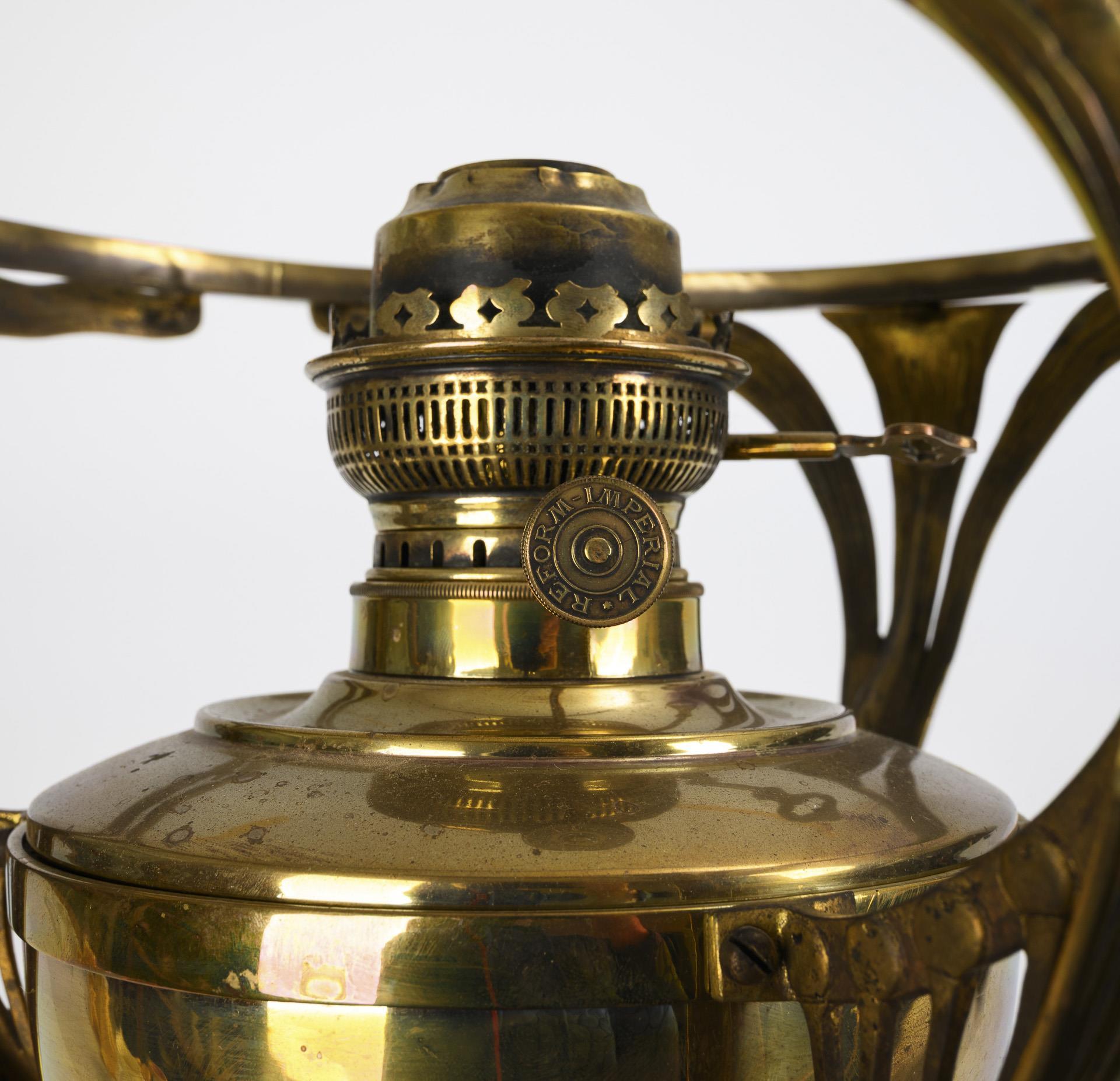 Großes, dekoratives Jugendstil-Petroleumlampengestell.