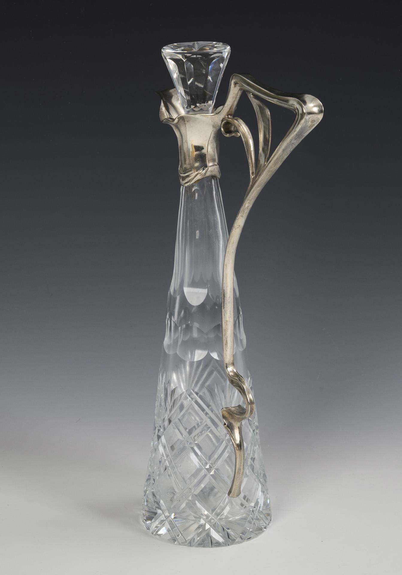 Jugendstil-Kristallkaraffe mit Metall-Applikation.