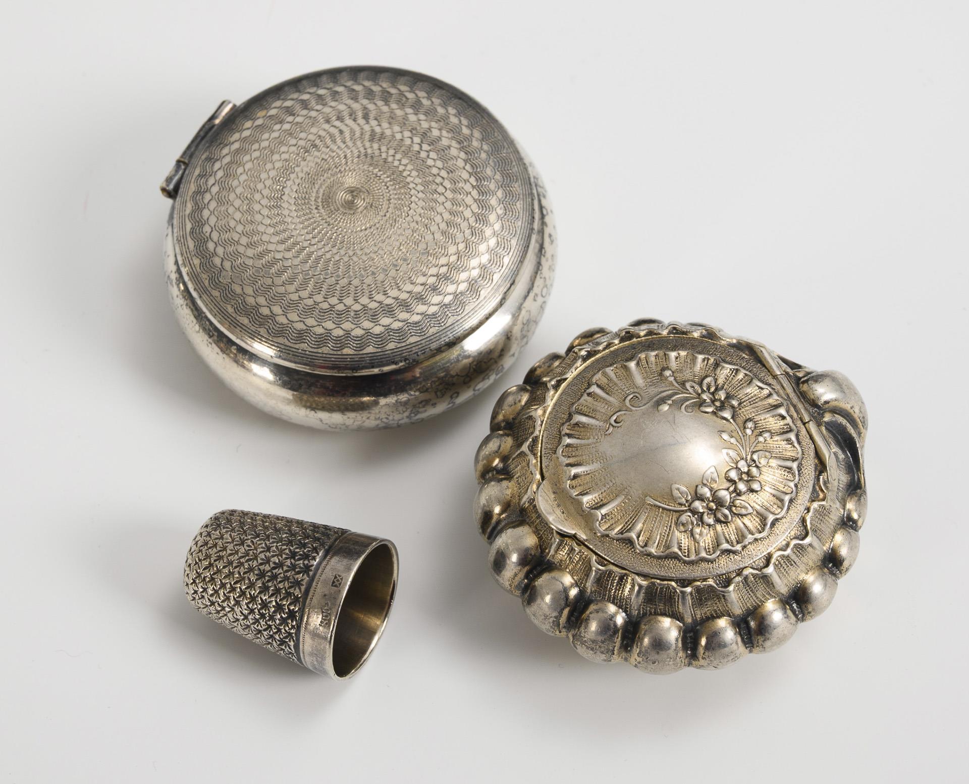 Verschiedene Teile, darunter Schälchen, englischer Leuchter, Schere, Fingerhut etc.