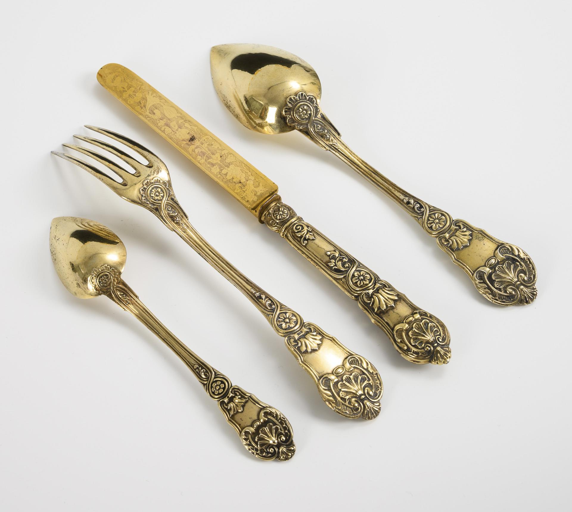 4-teiliges vergoldetes Silberbesteck. Charles Balaine, Paris.
