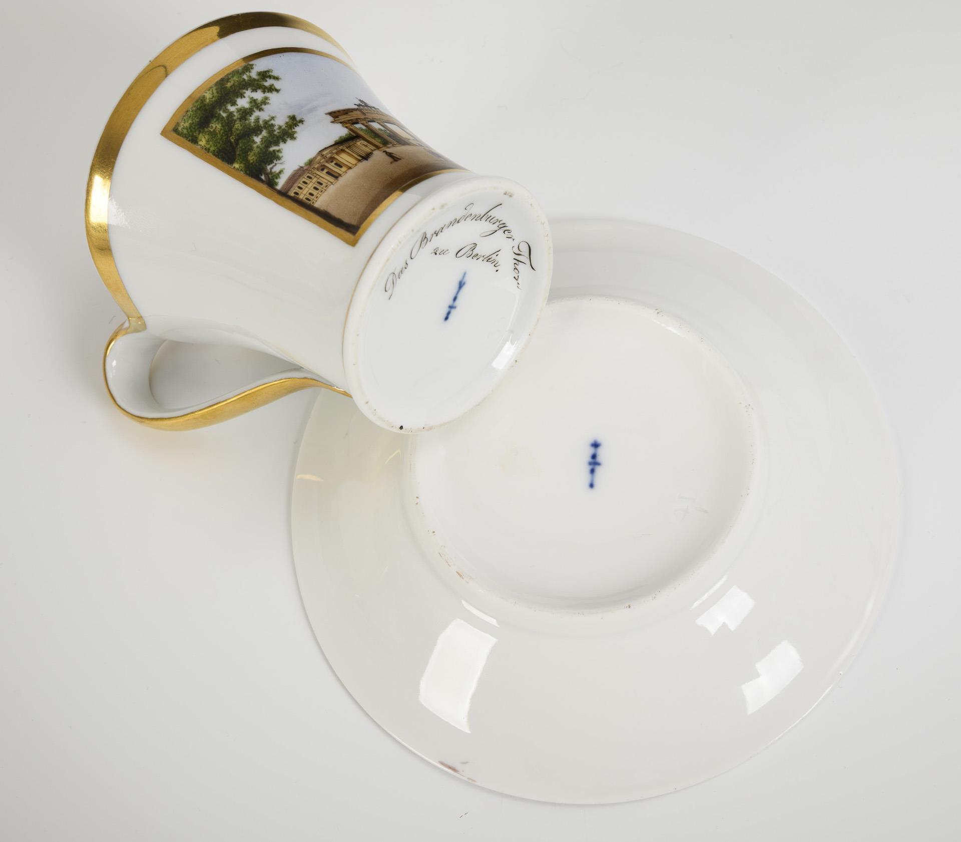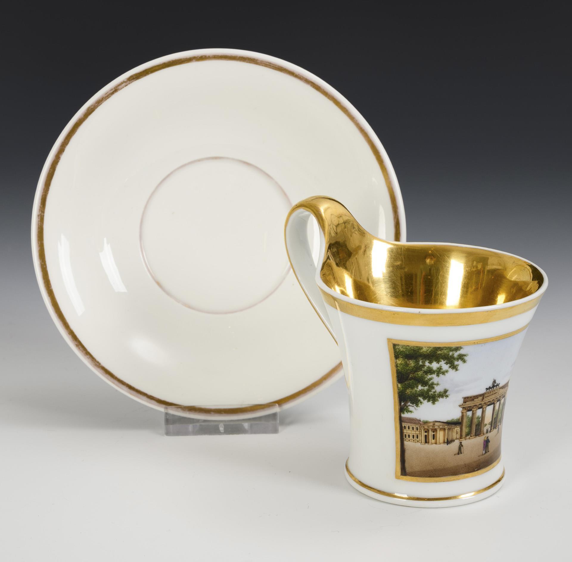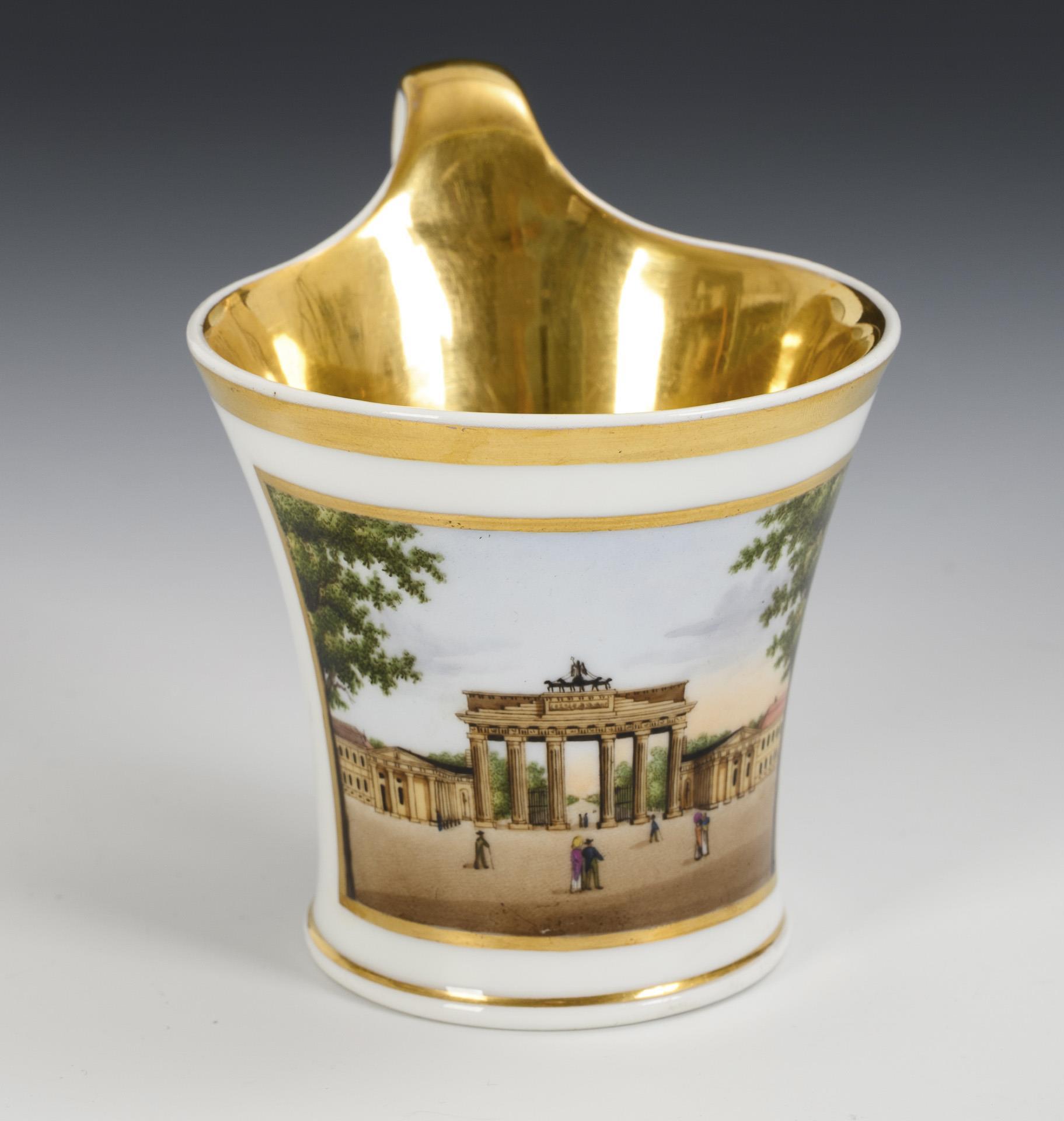 Modell "Konisch" mit Campanerhenkel. In einer goldgerahmten Rechteckkartusche die bezeichnete Darstellung des Brandenburger Tores in Berlin.