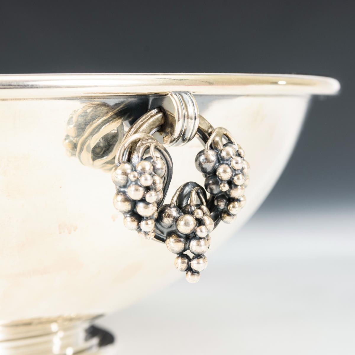 Schwere, handgetriebene Silberschüssel mit Traubendekor und beweglichen Handhaben.