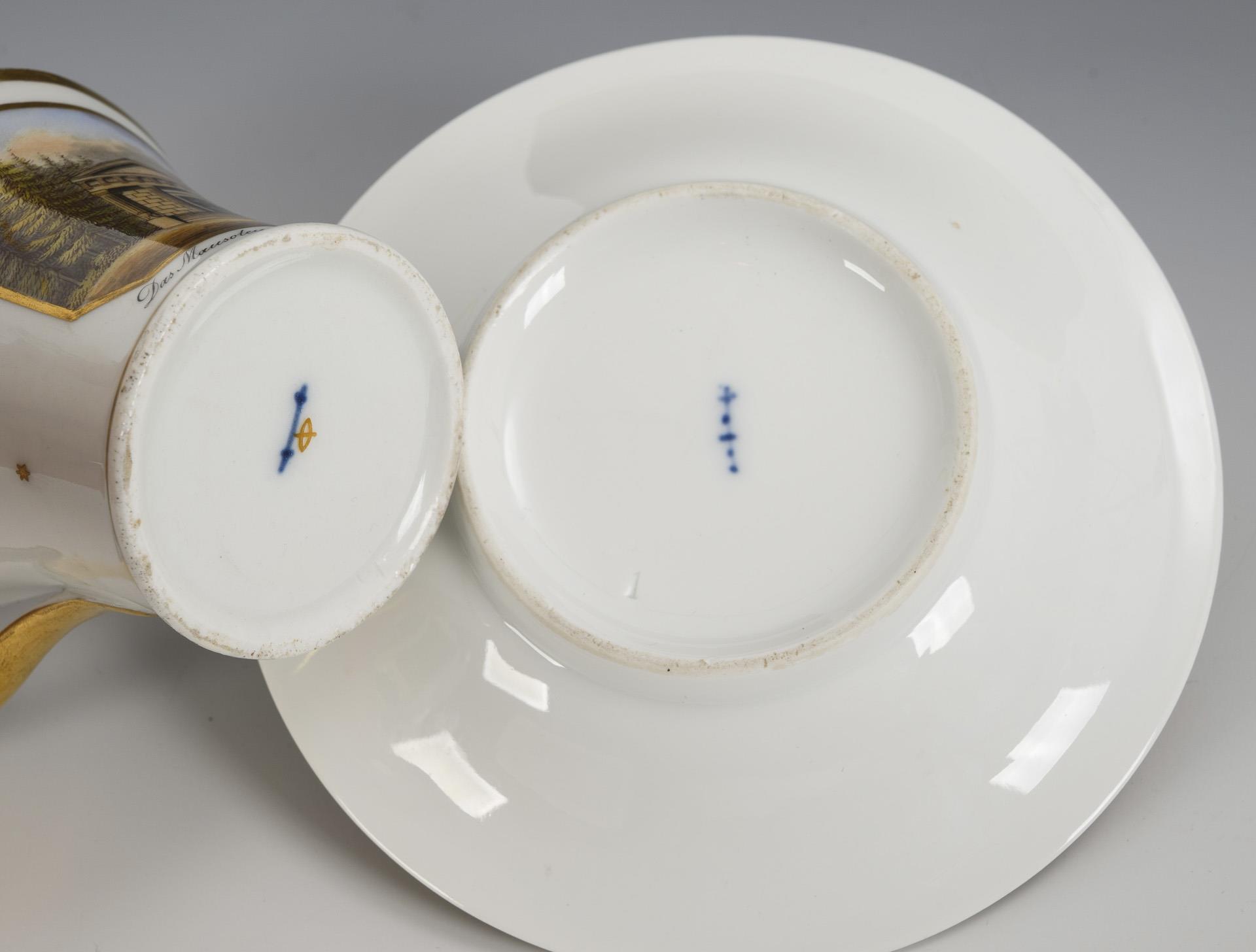 Modell "Konisch" mit Campanerhenkel. In einer goldgerahmten Rechteckkartusche die bezeichnete Ansicht des Mausoleums zu Charlottenburg, innen vergoldet.