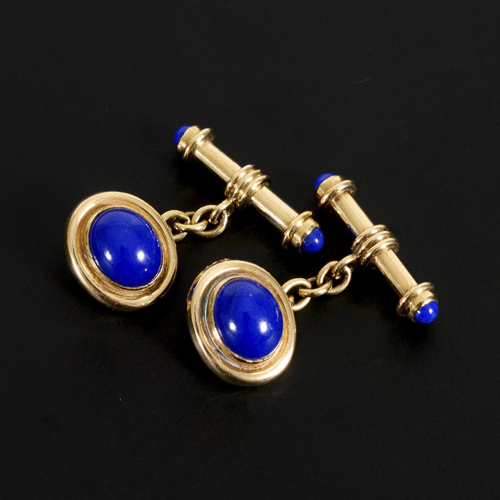 Dekorative Manschettenknöpfe der englischen Marke Deakin & Francis mit Lapis Lazuli-Cabochons.