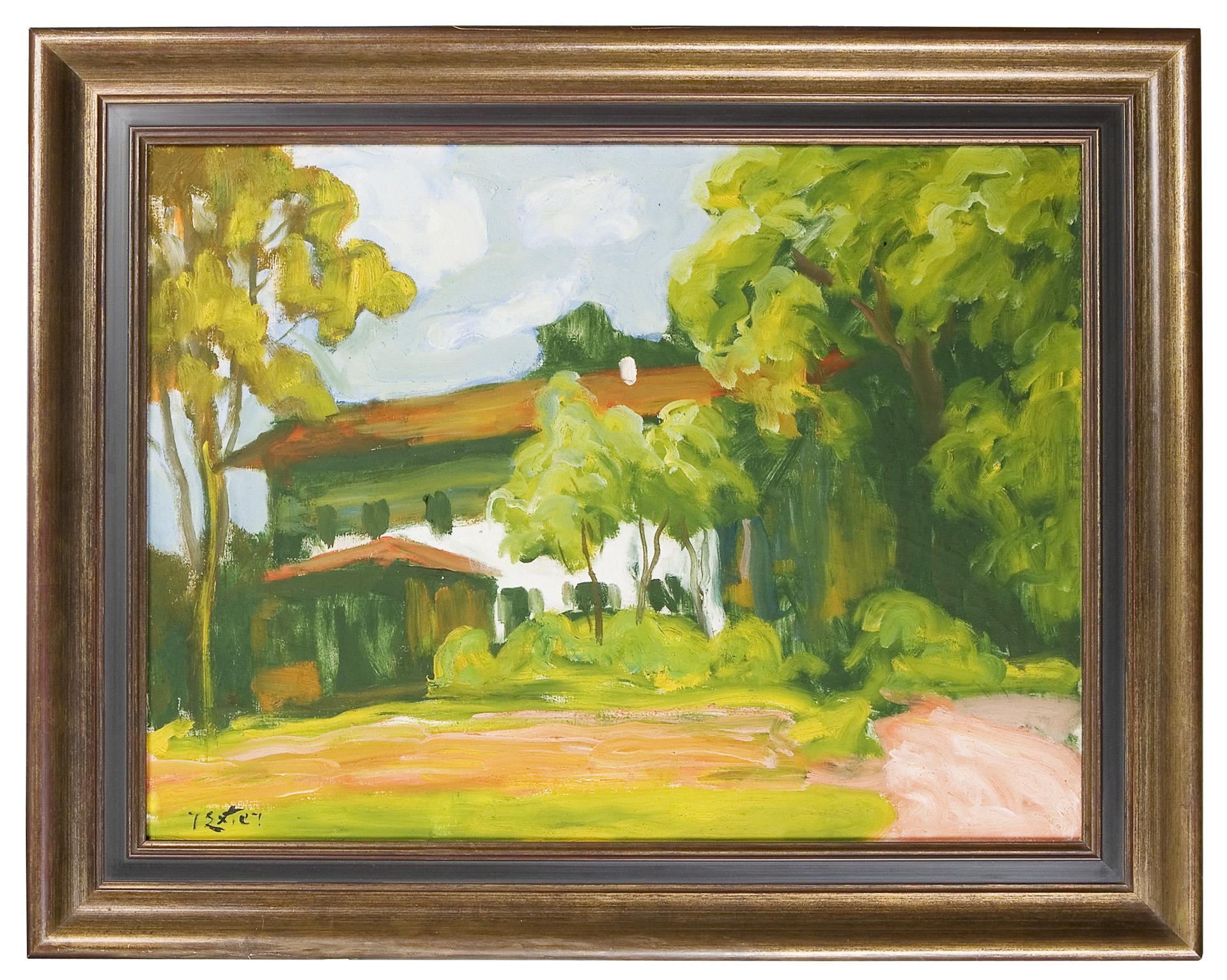 Eine Sommeransicht von vitaler Farbigkeit. Profilierter Rahmen.