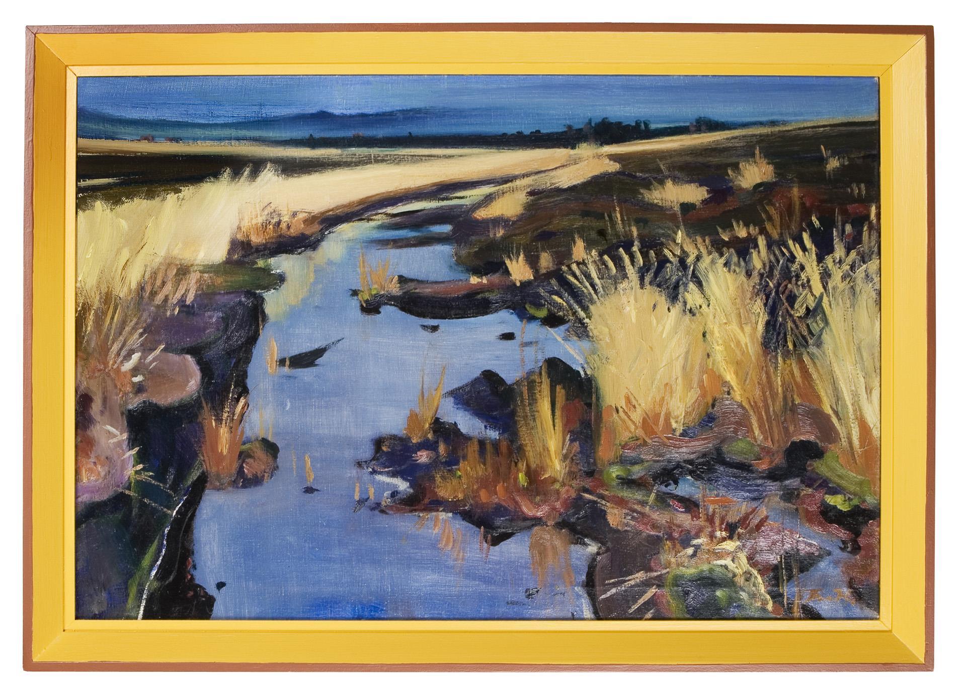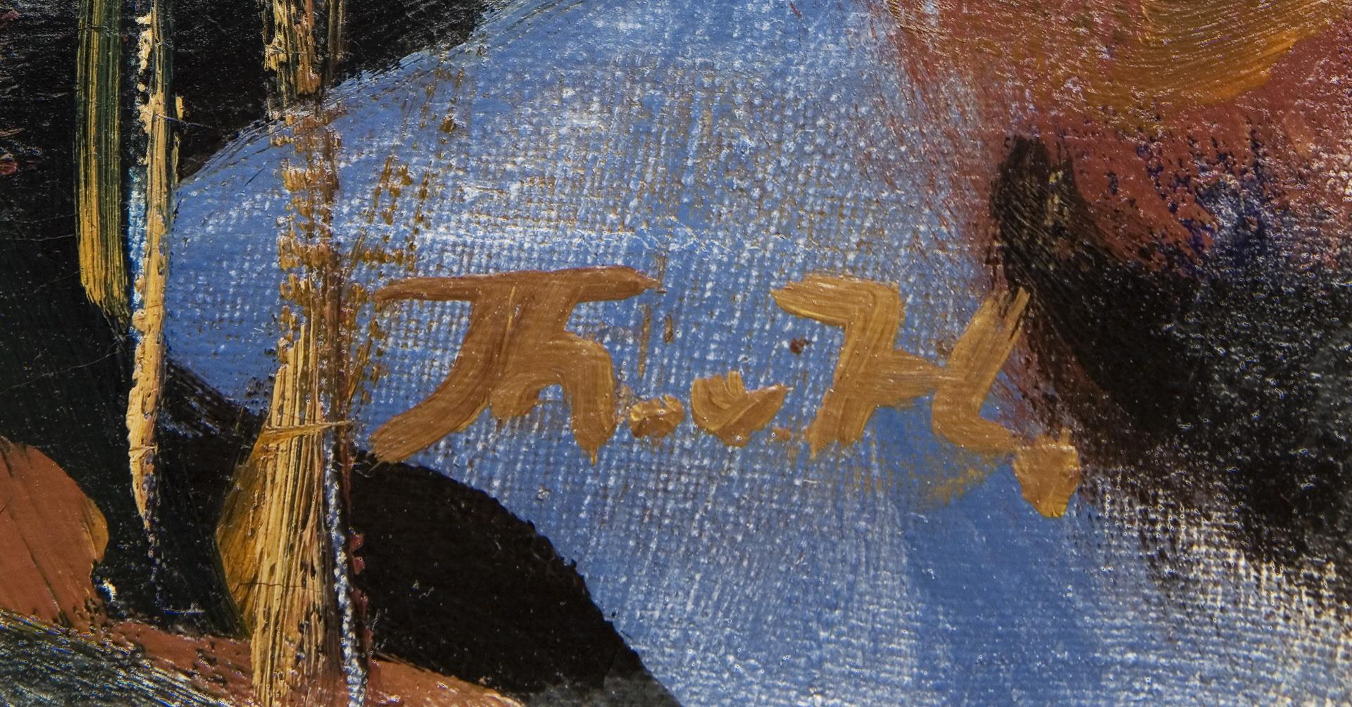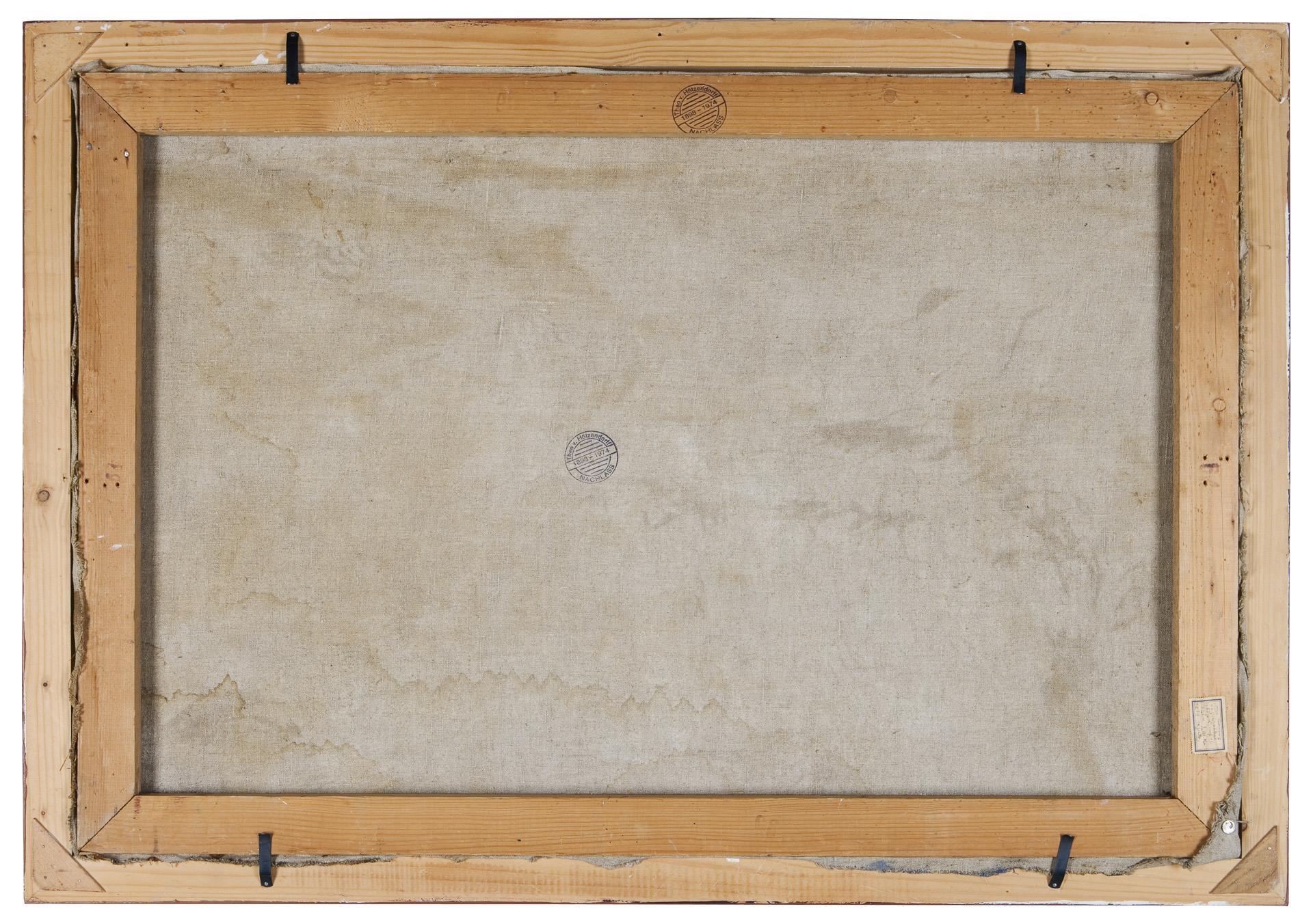 Ansicht von einer farbigen Frische und starken Leuchtkraft mit kontrastreichen Fabflächen. Rückseitig auf der Leinwand und dem Keilrahmen Nachlass-Stempel des Künstlers. Profilierter Rahmen.