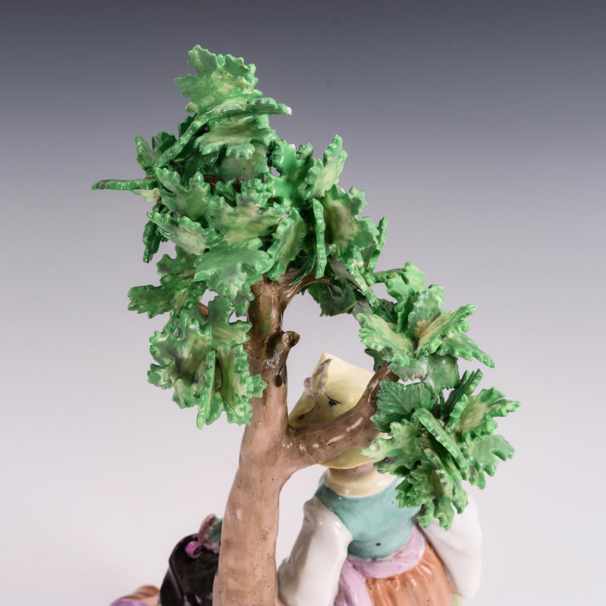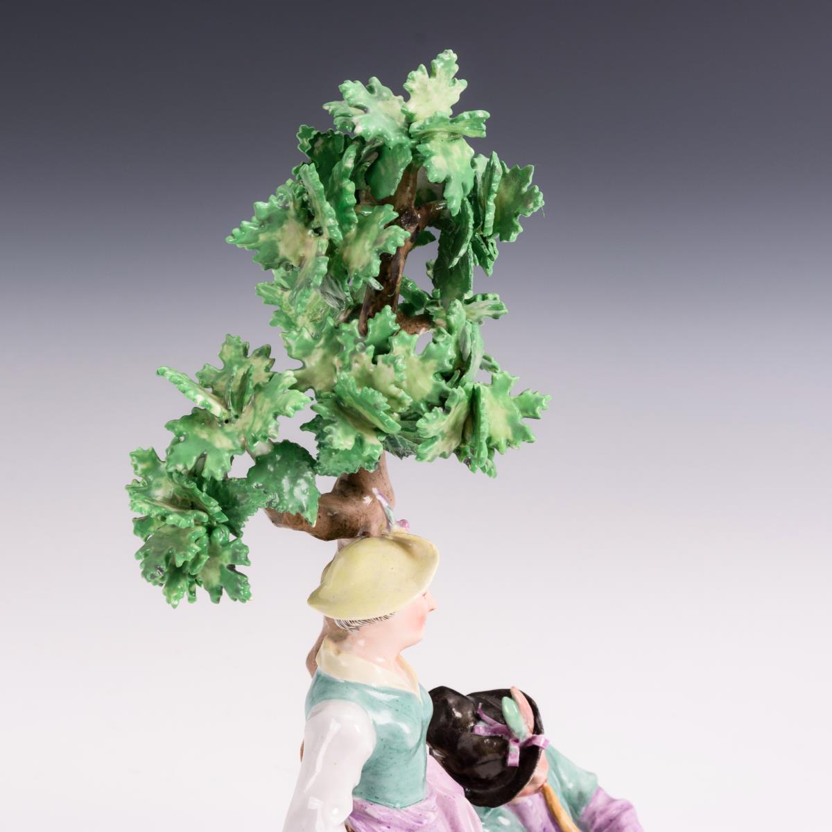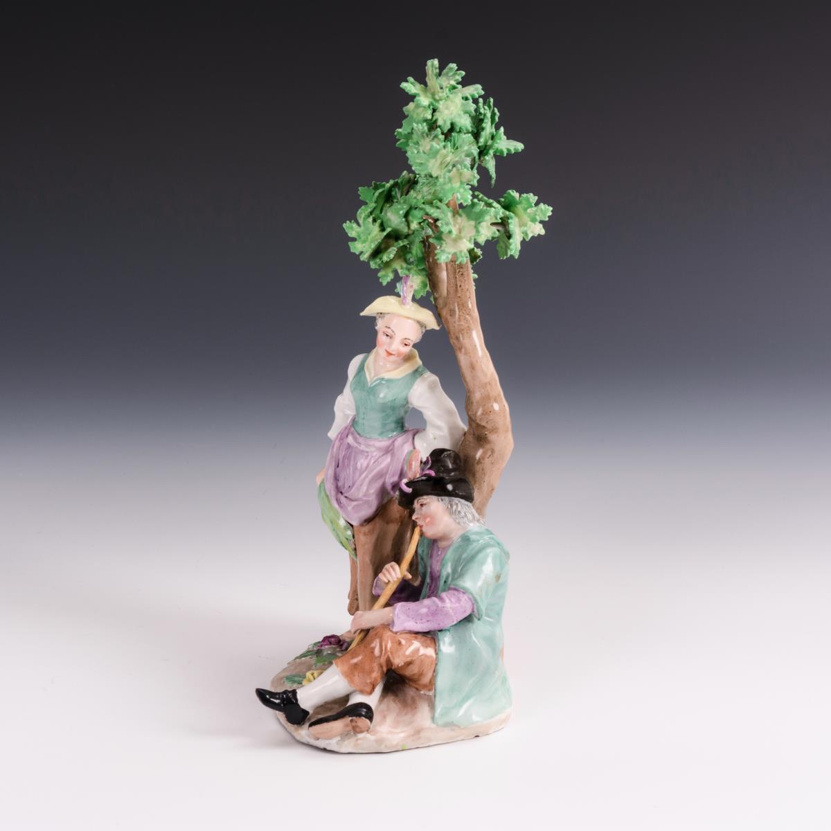 Bäuerin mit alphornspielendem Bauern unter einem Baum. Restauriert, einige Blätter geklebt, unterseitig Brandriss.