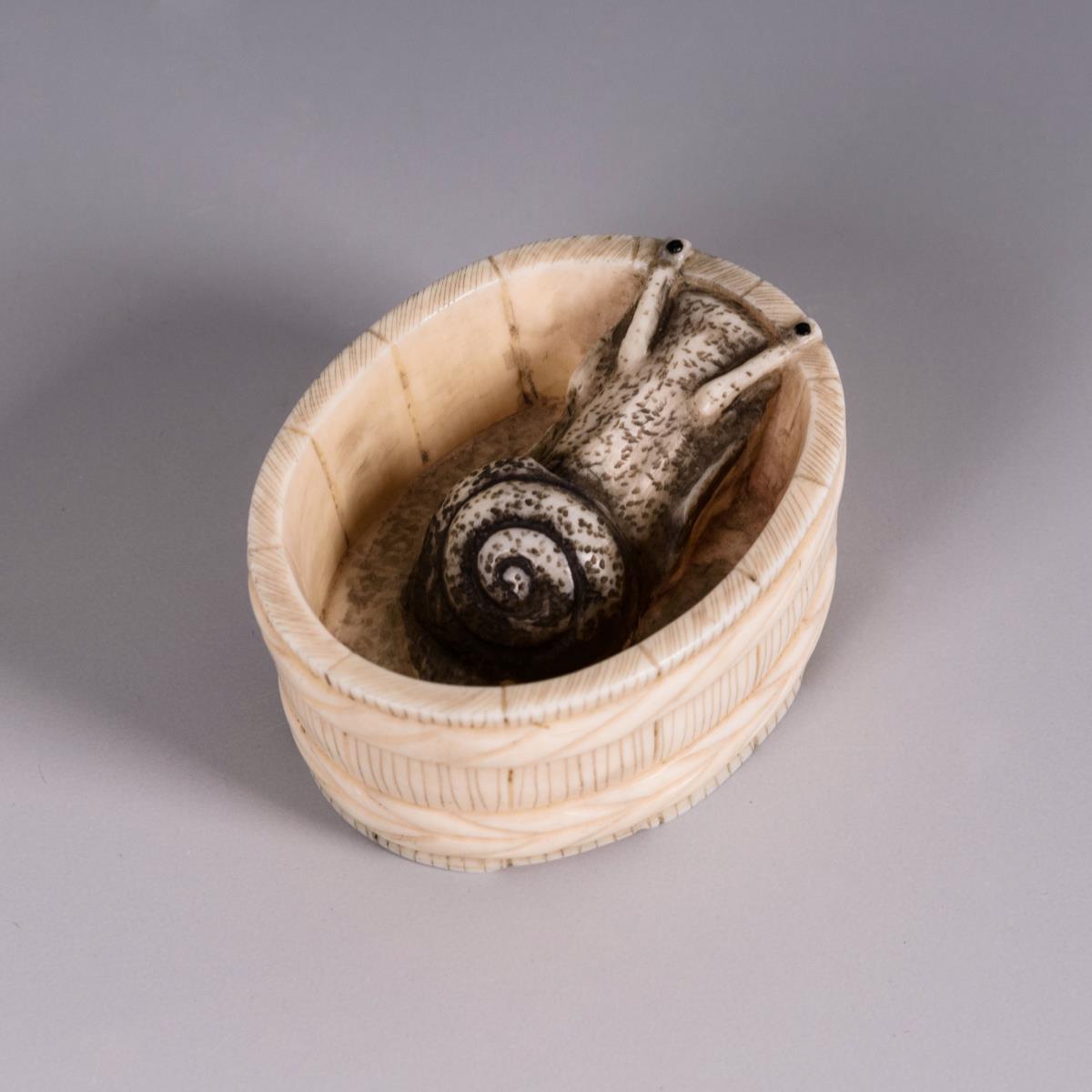 Elfenbein Netsuke - Schnecke im Bottich.